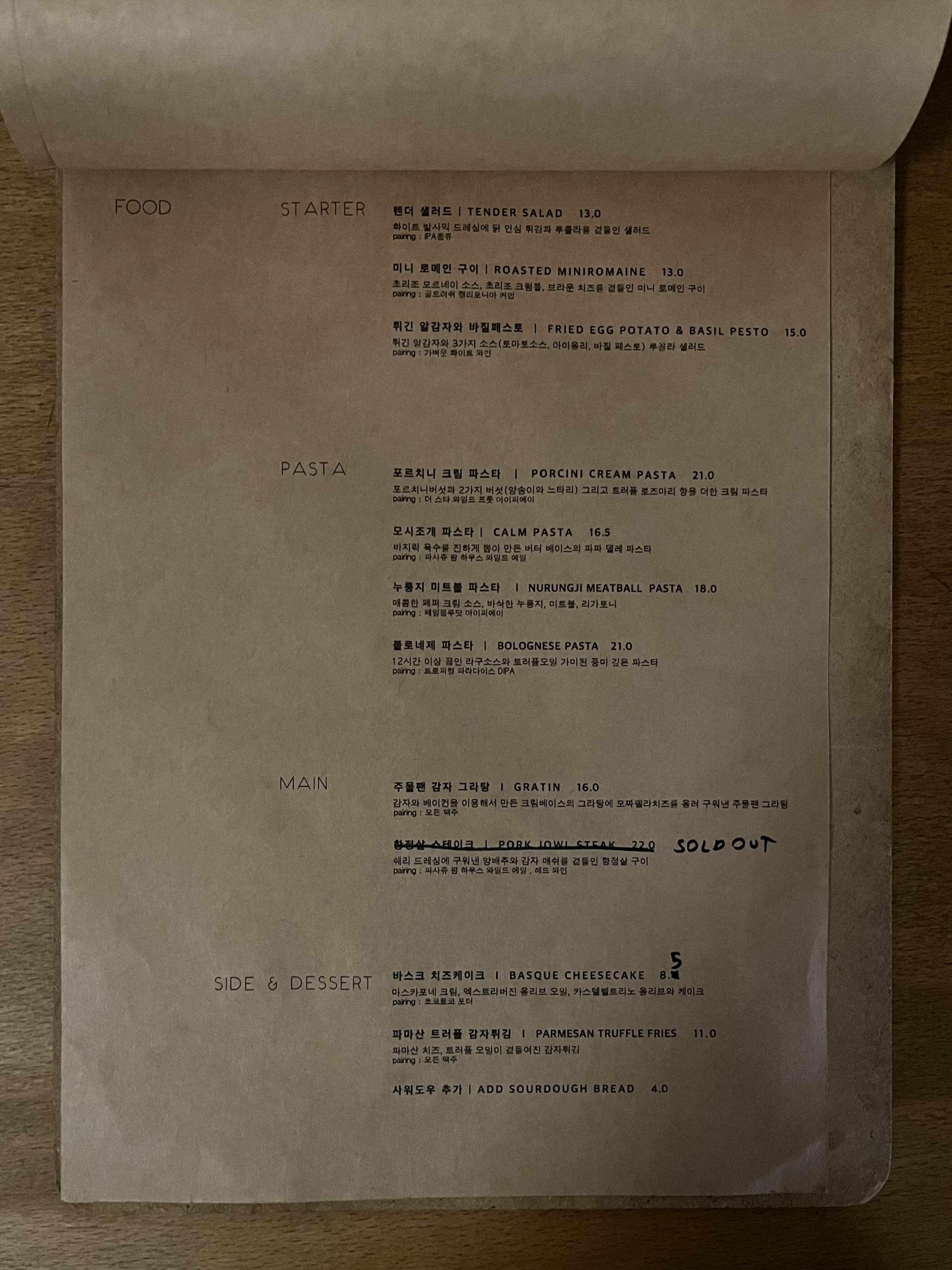 펍 레스토랑답게 맛있어 보이는 음식메뉴가 많았습니다🤭