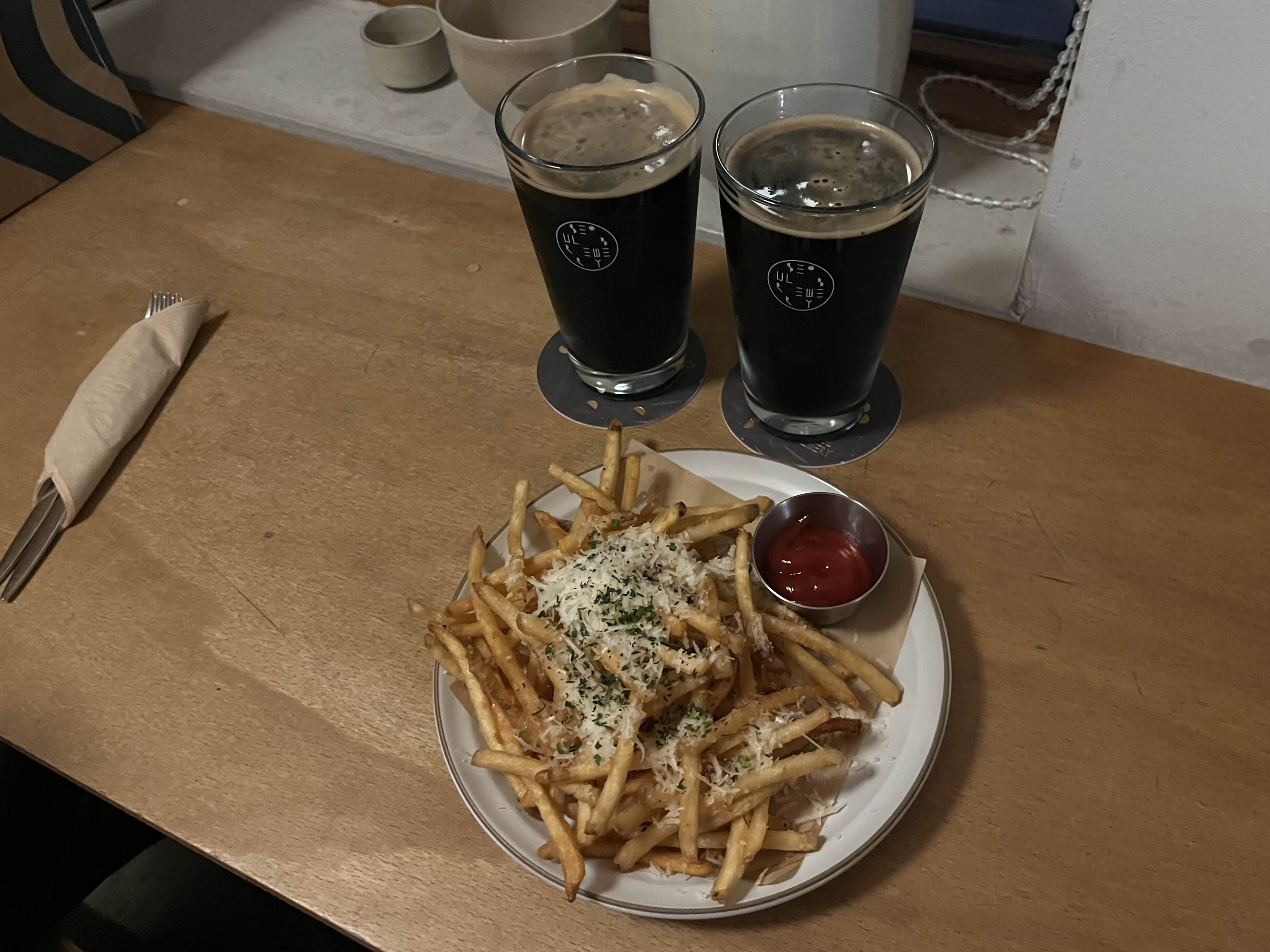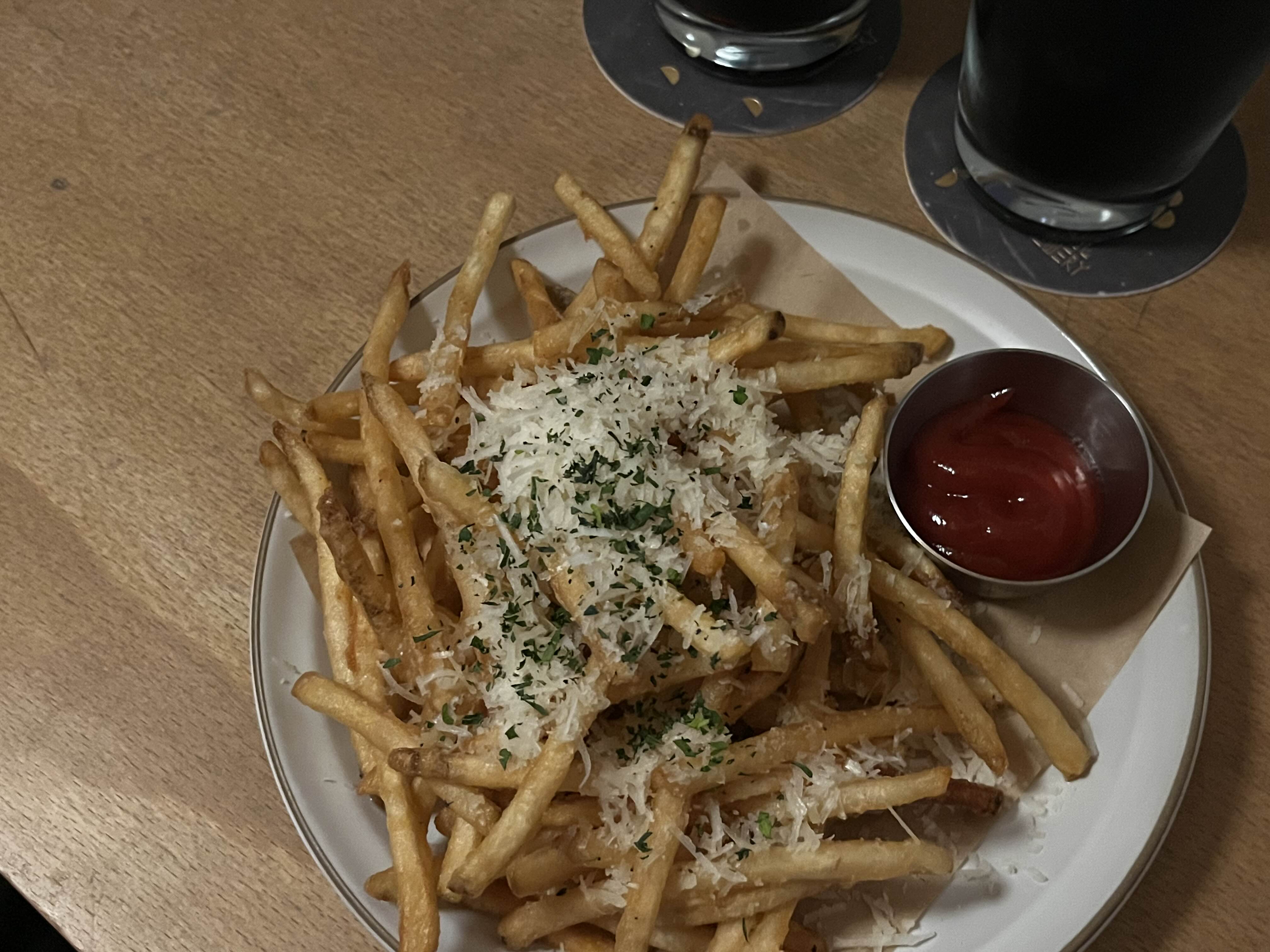 파마산 치즈와 트러플 오일이 곁들여진 감자튀김으로, 모든 맥주와 페어링 하기 좋은 안주라고 해요🍟