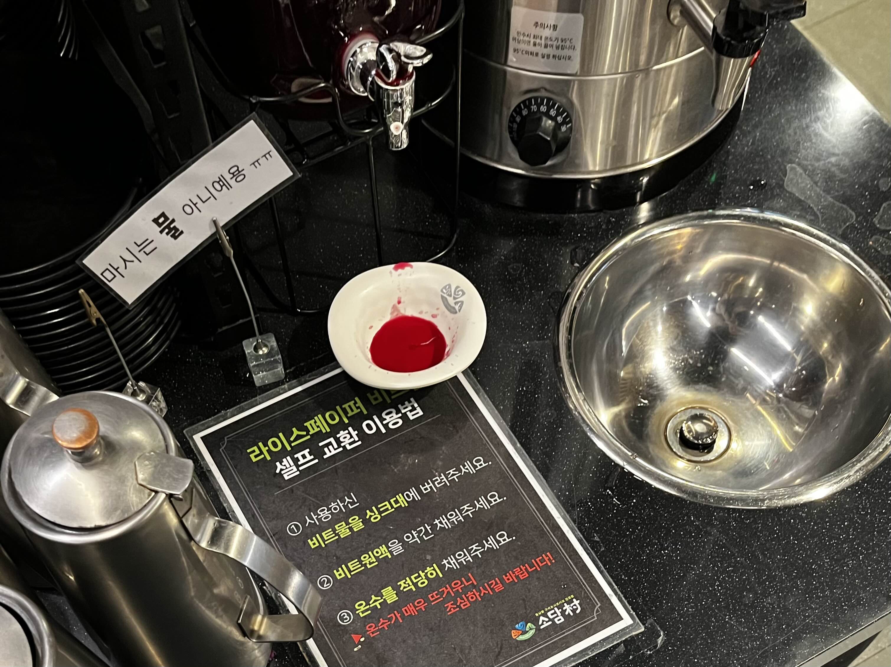 추가 샤브샤브 육수 / 라이스페이퍼 / 비트물도 이곳에서 리필이 가능해요