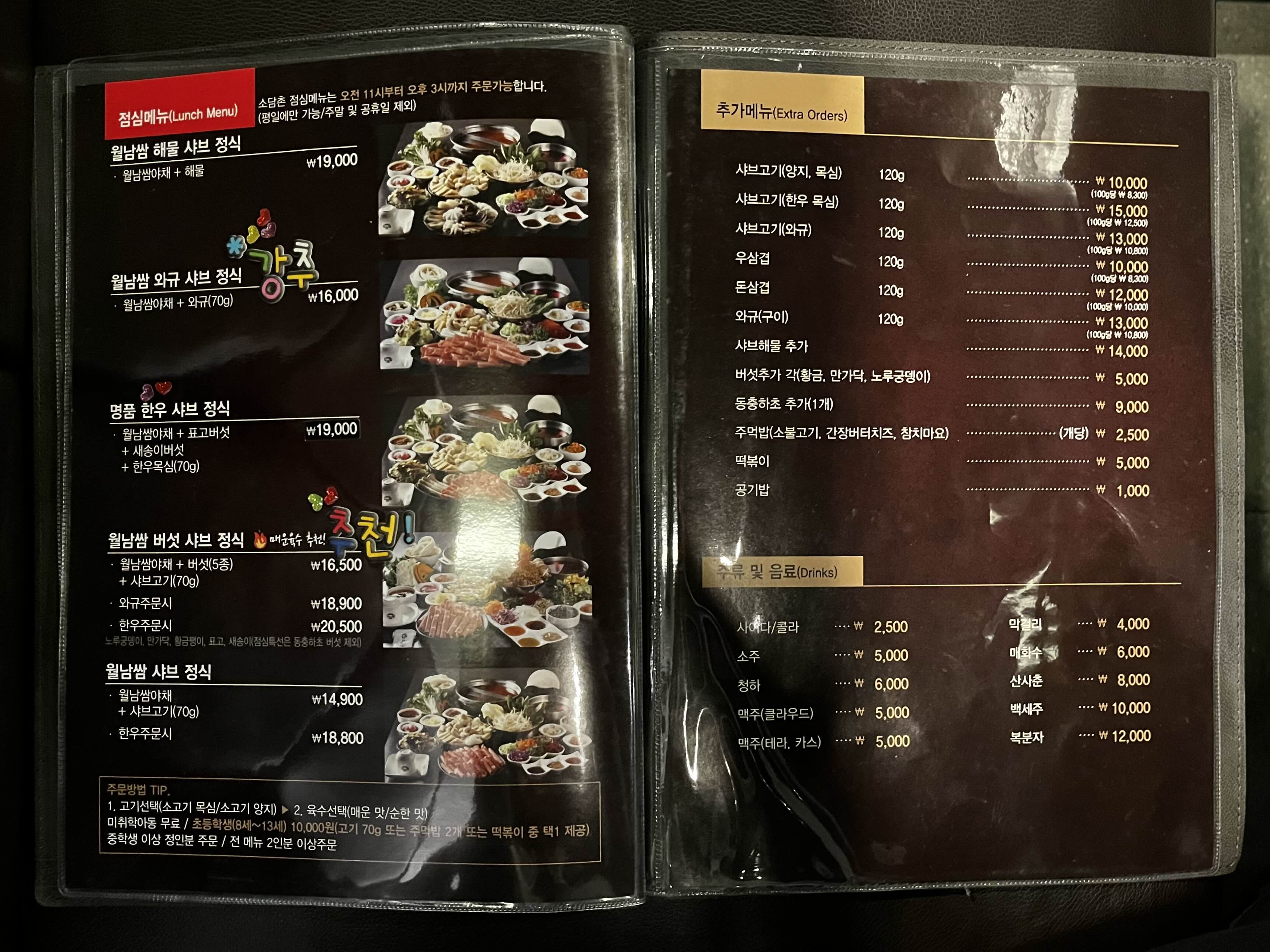 월남쌈 샤브(기본)★★ / 월남쌈 버섯 샤브 / 월남쌈 와규 샤브 / 우삼겹 구이 샤브 등