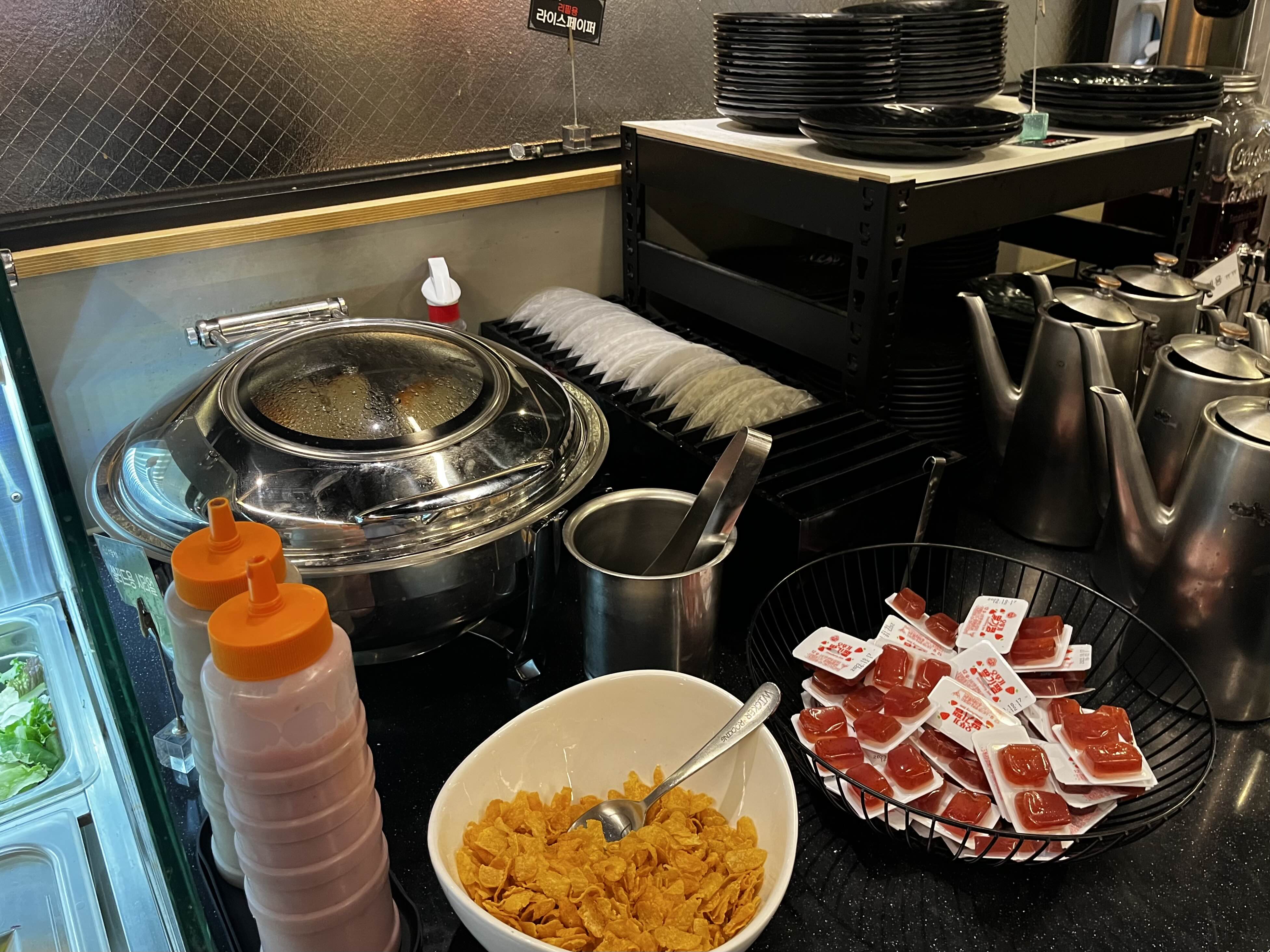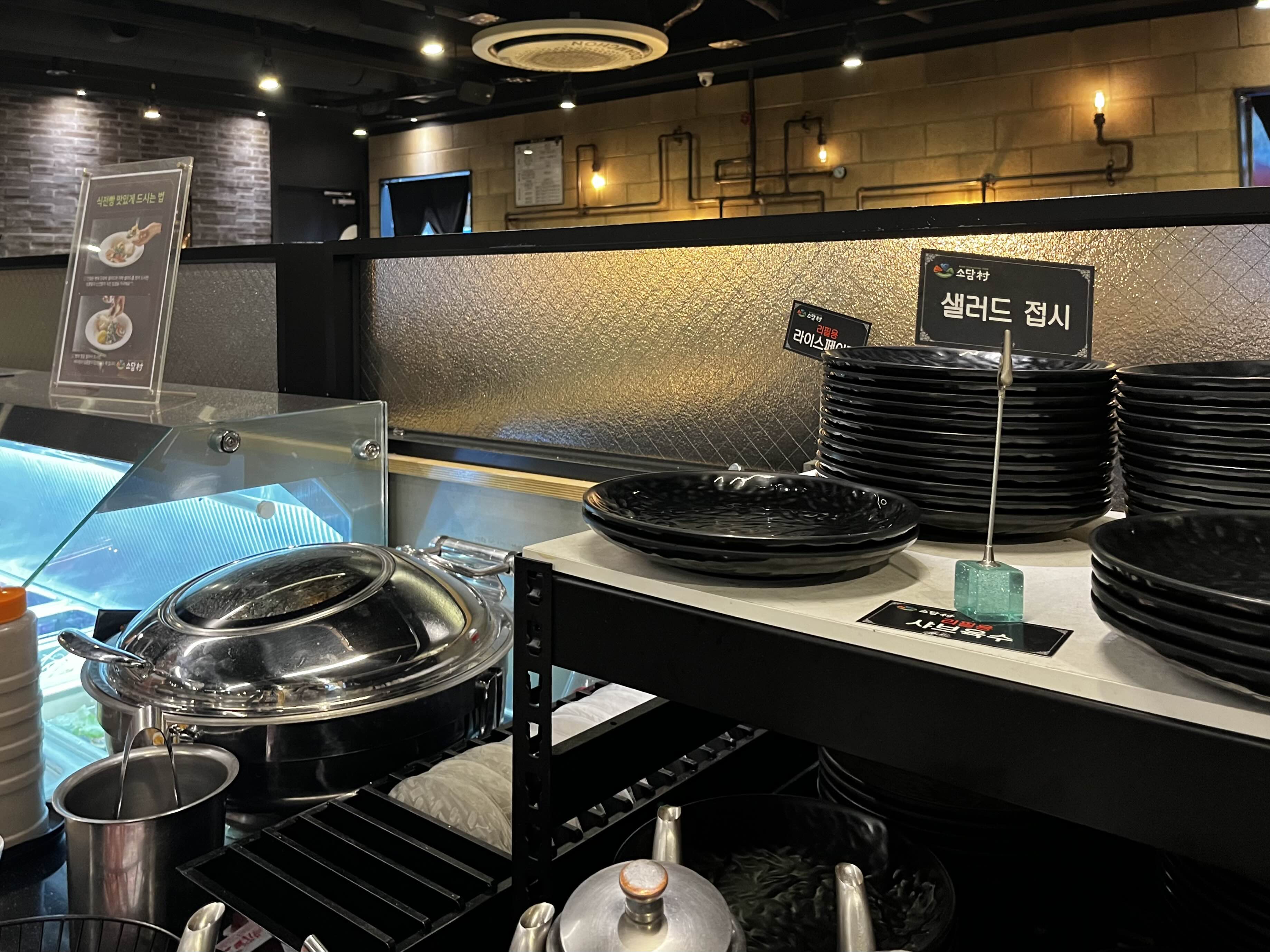 필요할 때마다 야채와 밑반찬들을 셀프로 가져다 드실 수 있는 방식입니다