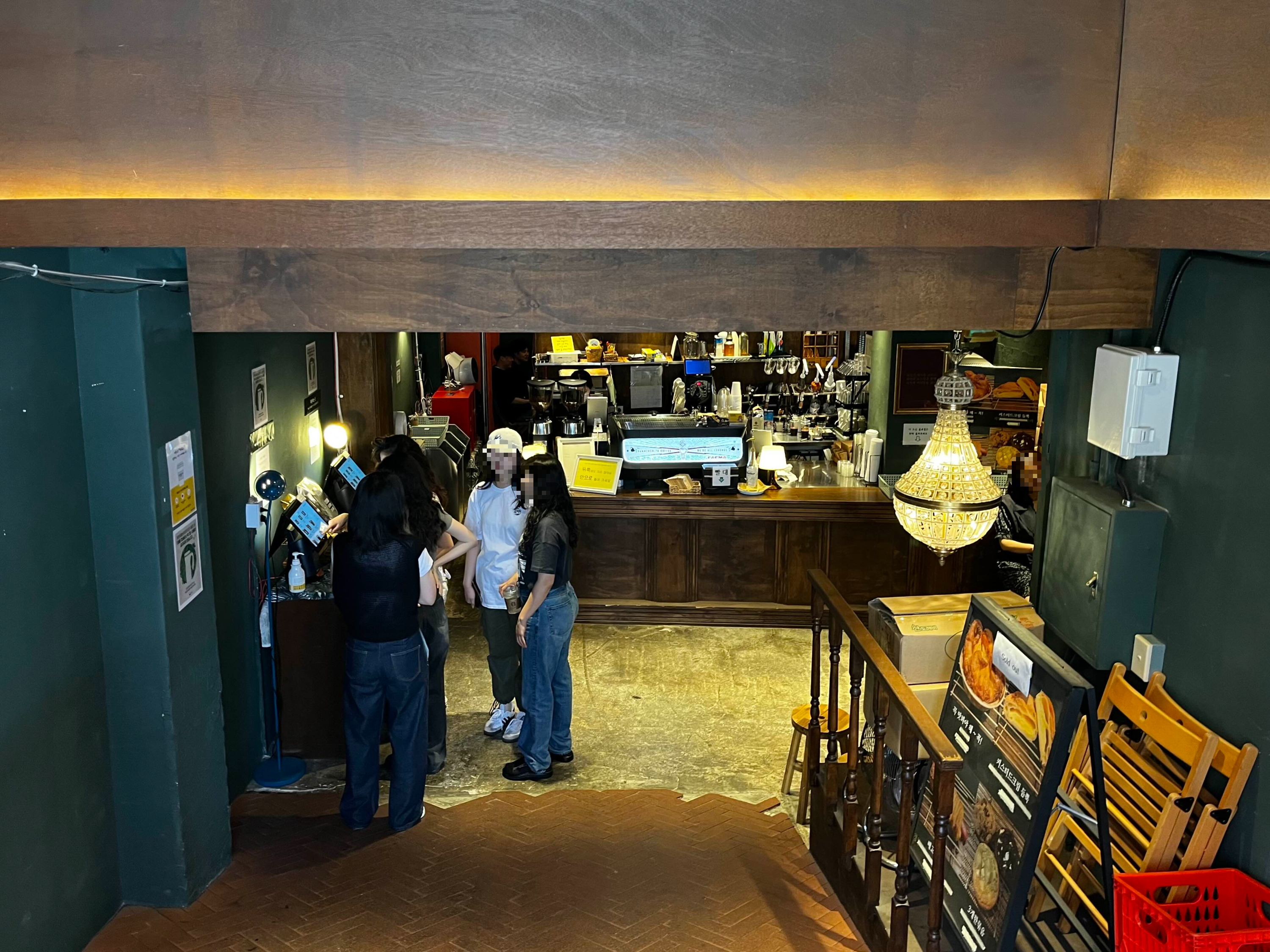 내부가 왜 이렇게 어둡나 했는데, 살짝 지하로 내려가야 하는 독특한 구조의 카페였습니다😶🌫️