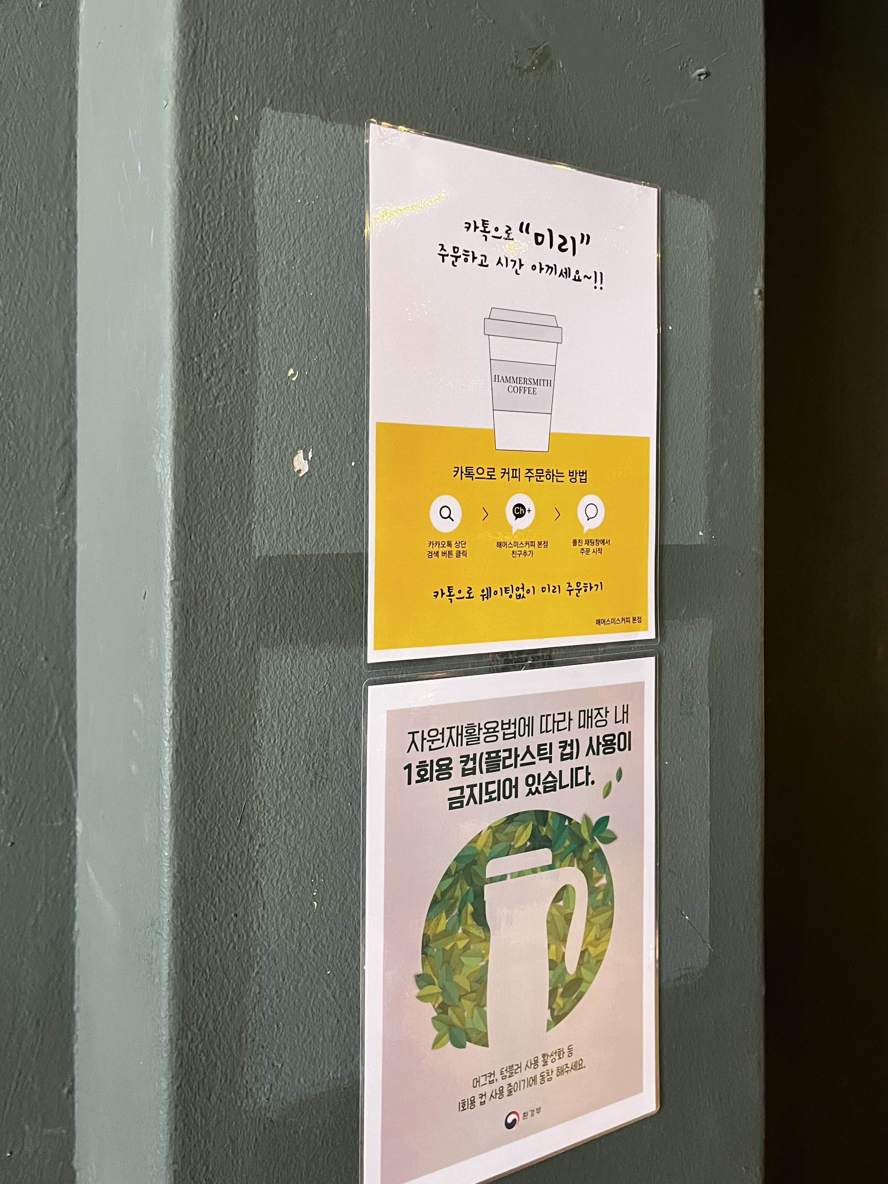 해머스미스커피의 시그니처 메뉴 두 가지를 주문했습니다😀