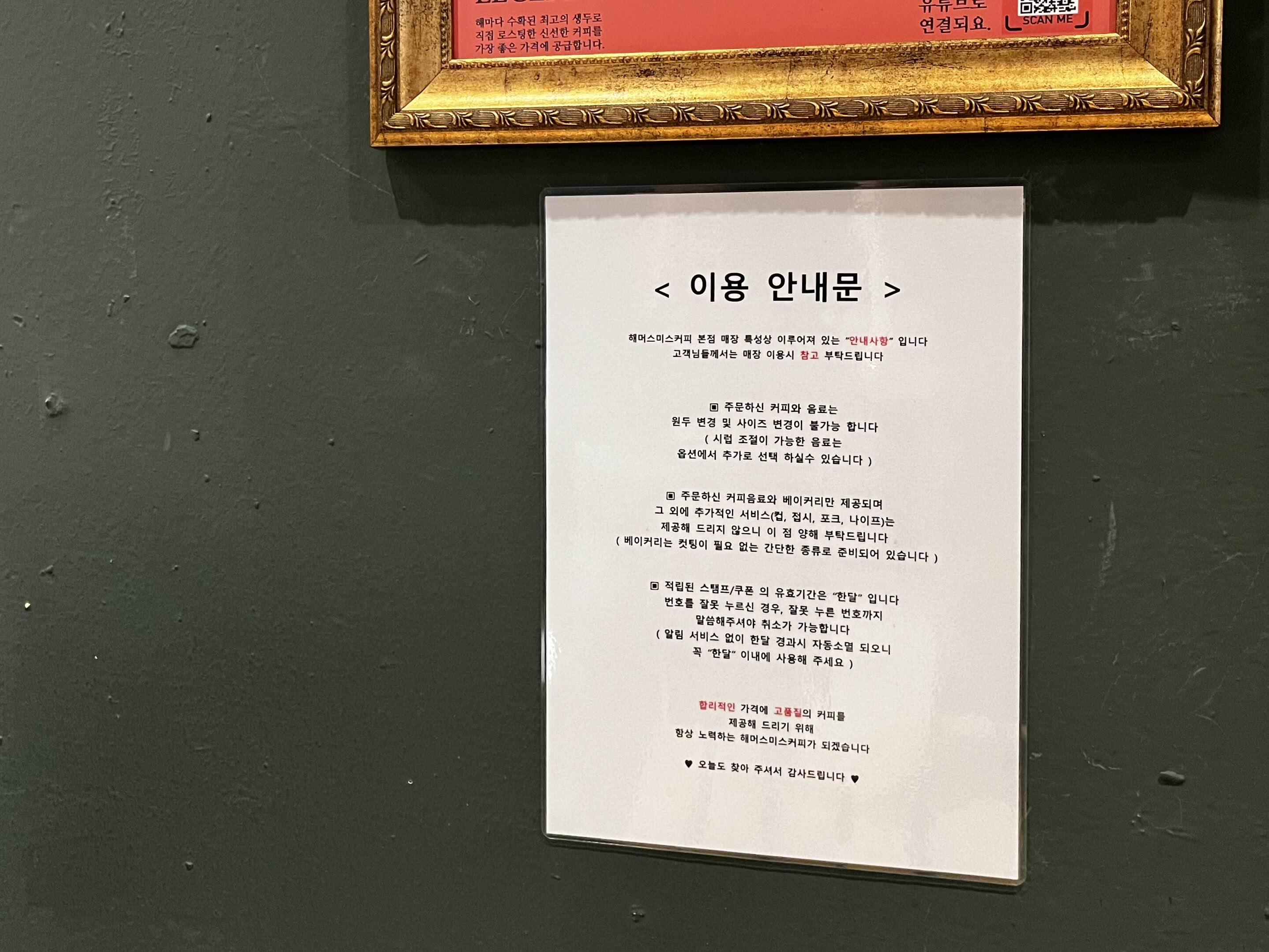 ✔️해머스미스커피는 입구에 비치된 두 대의 키오스크를 통해 주문 가능합니다