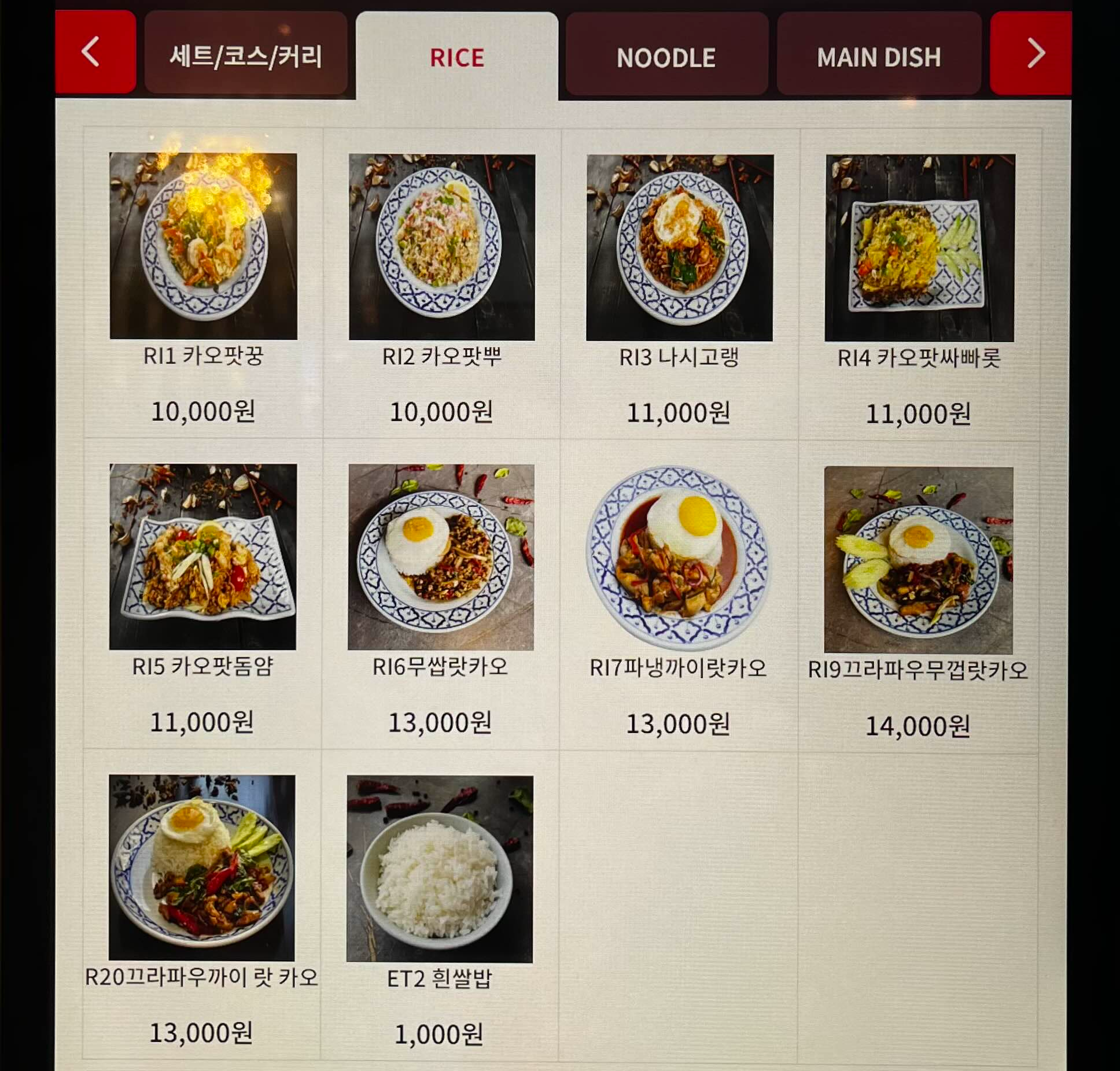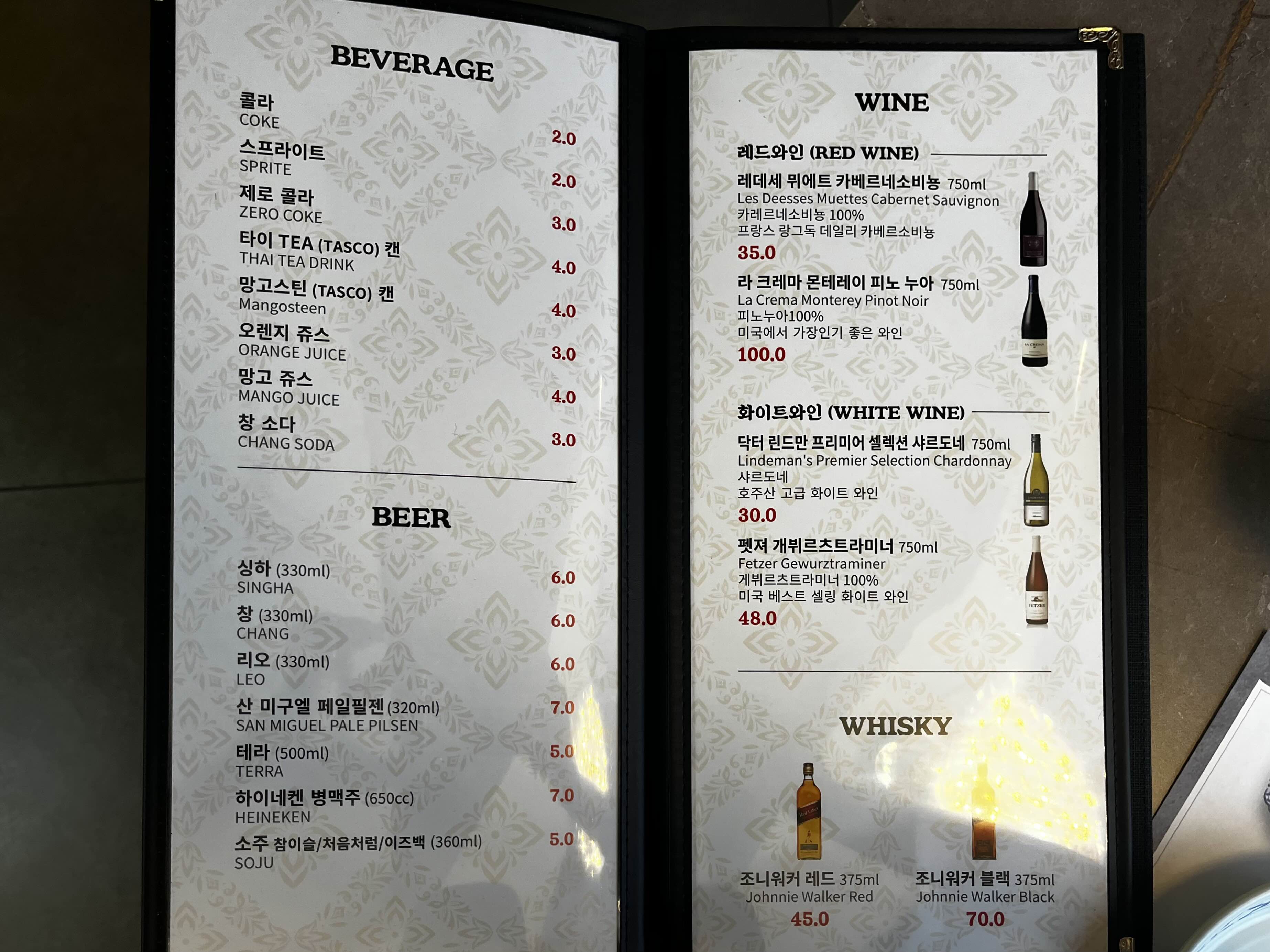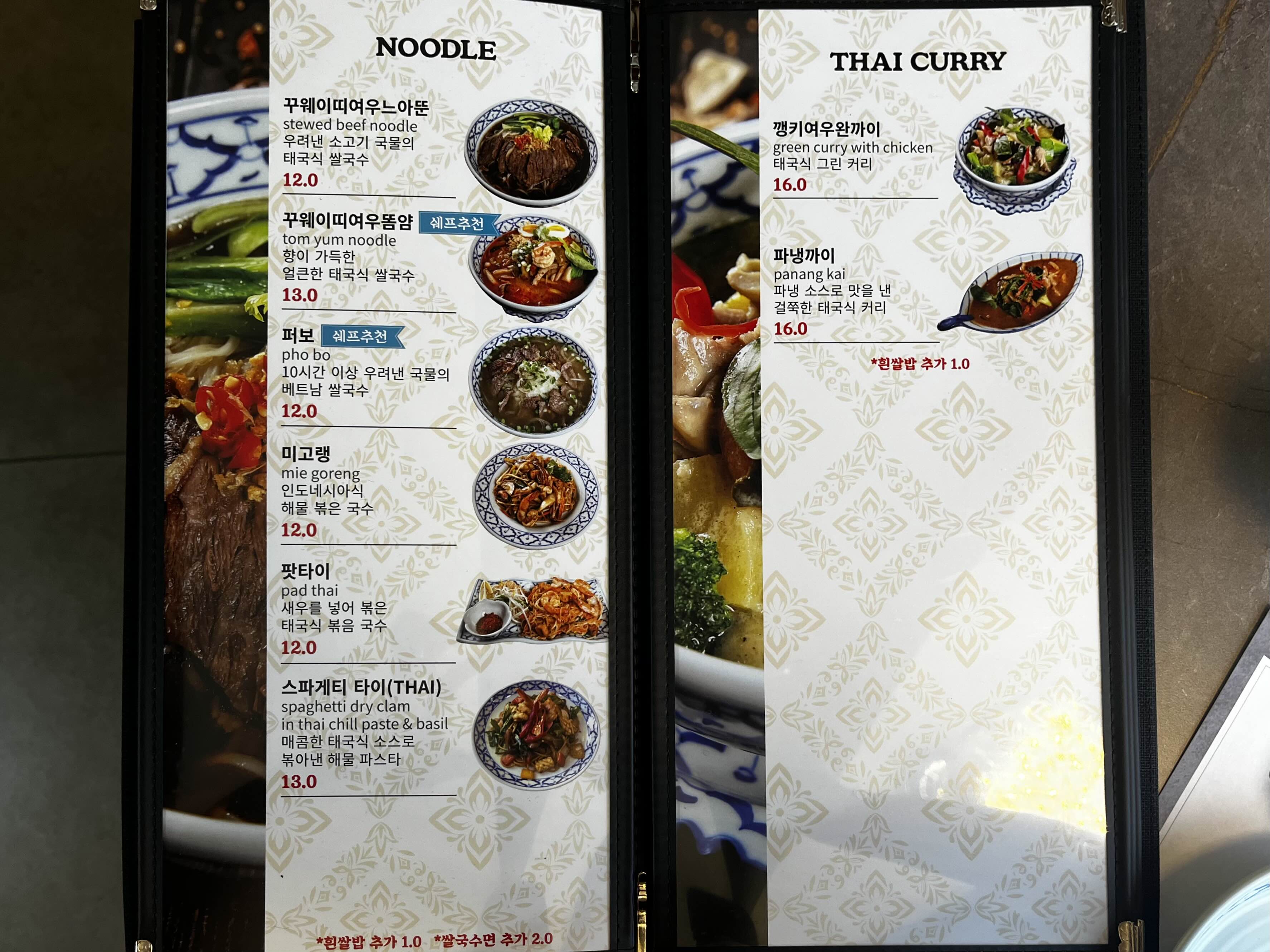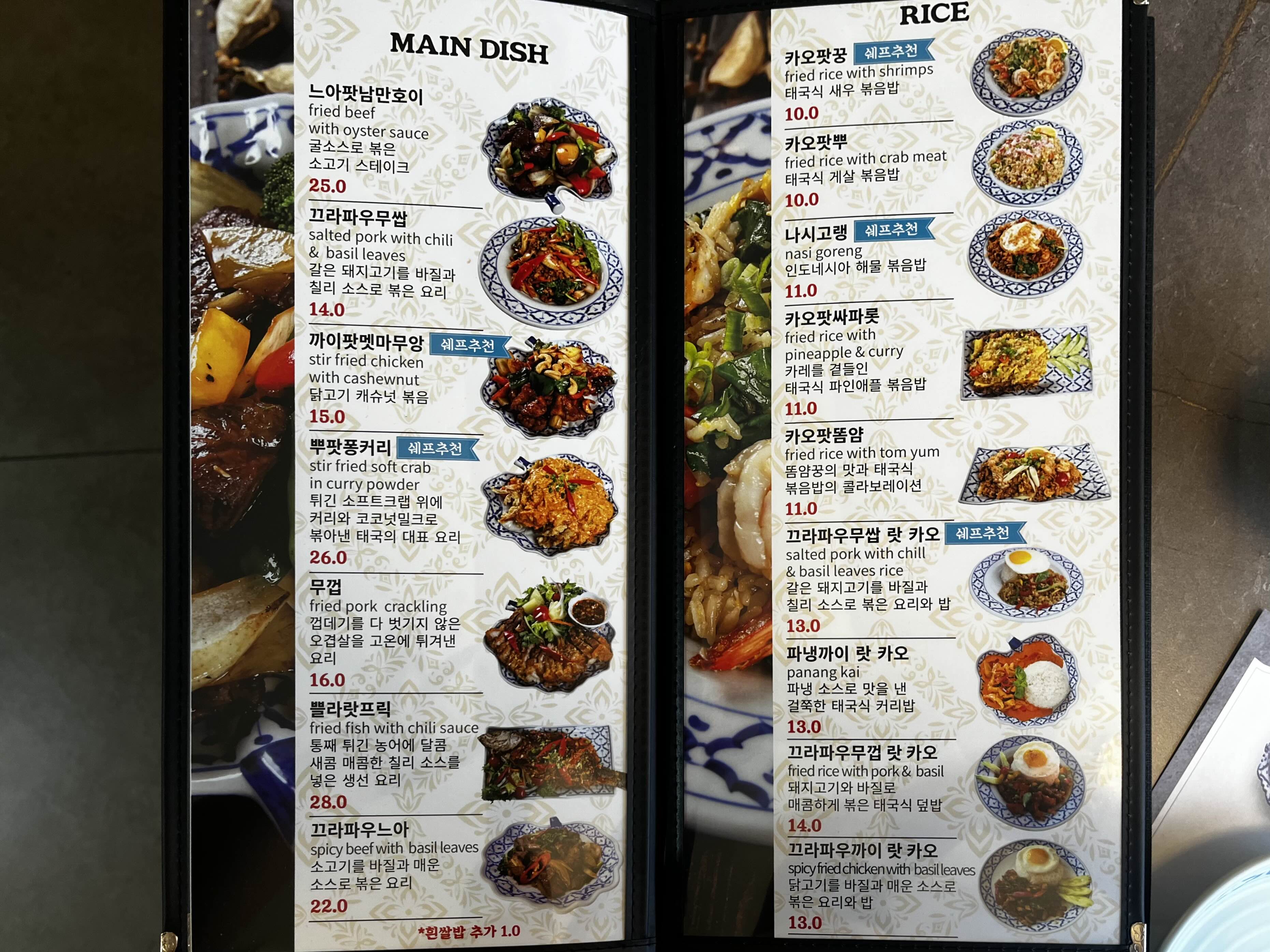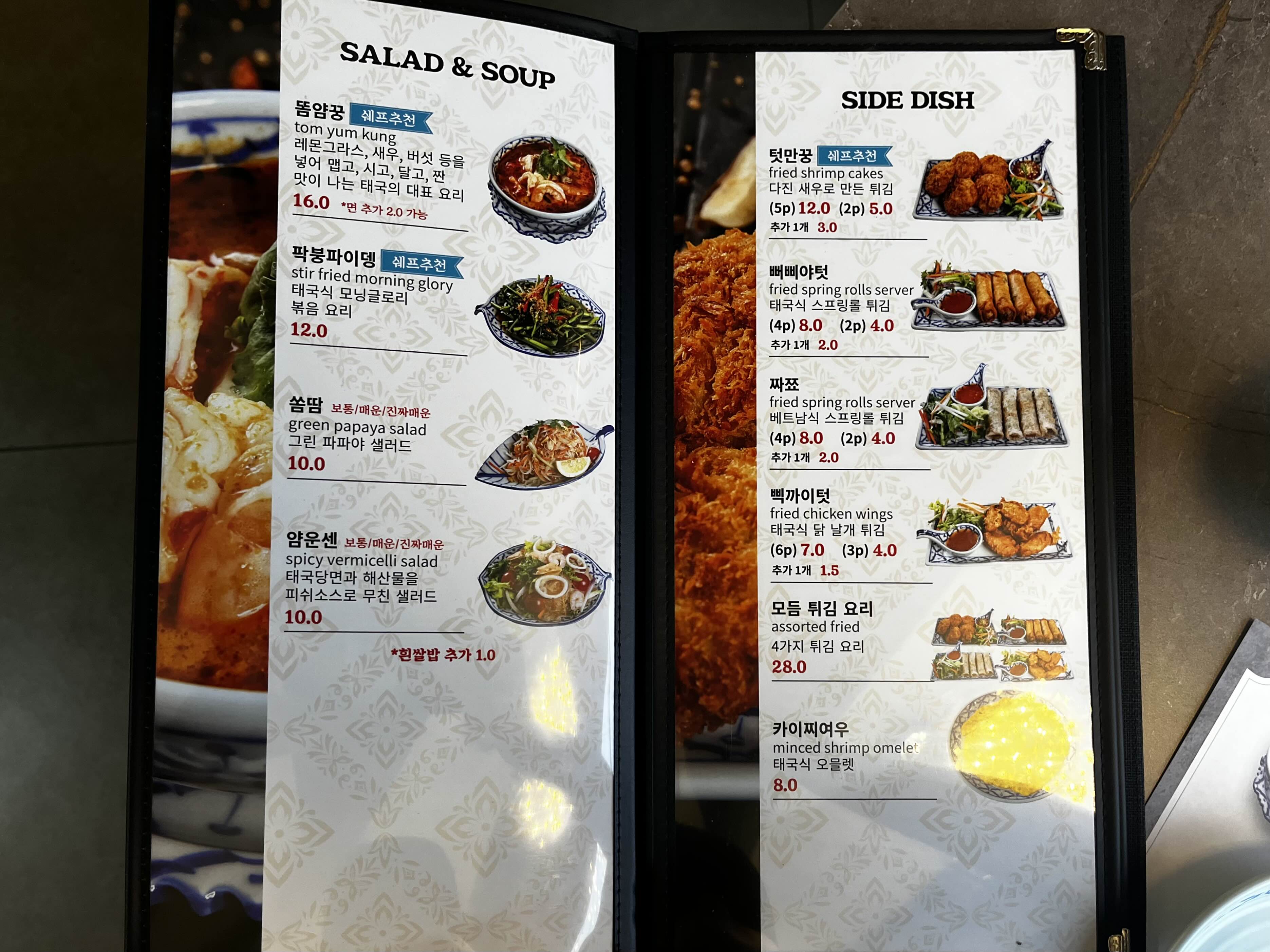 태국음식이라 대부분 생소한 메뉴들인데, 사진과 함께 간단한 설명도 함께 되어 있어 좋았어요👏