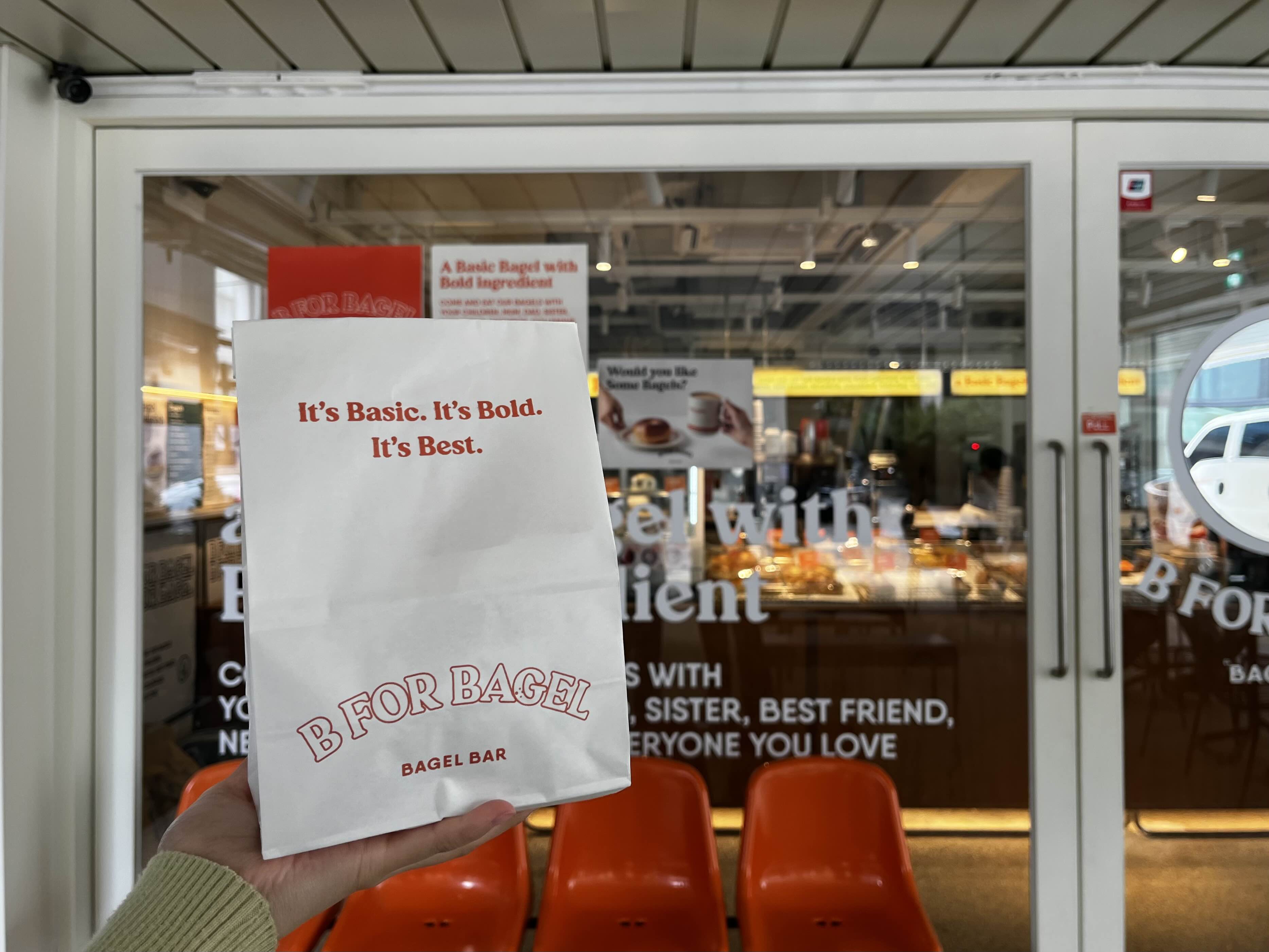 테이크아웃으로 메뉴를 주문했고, 비포베이글 로고의 예쁜 종이포장백에 담아주셨습니다🛍️