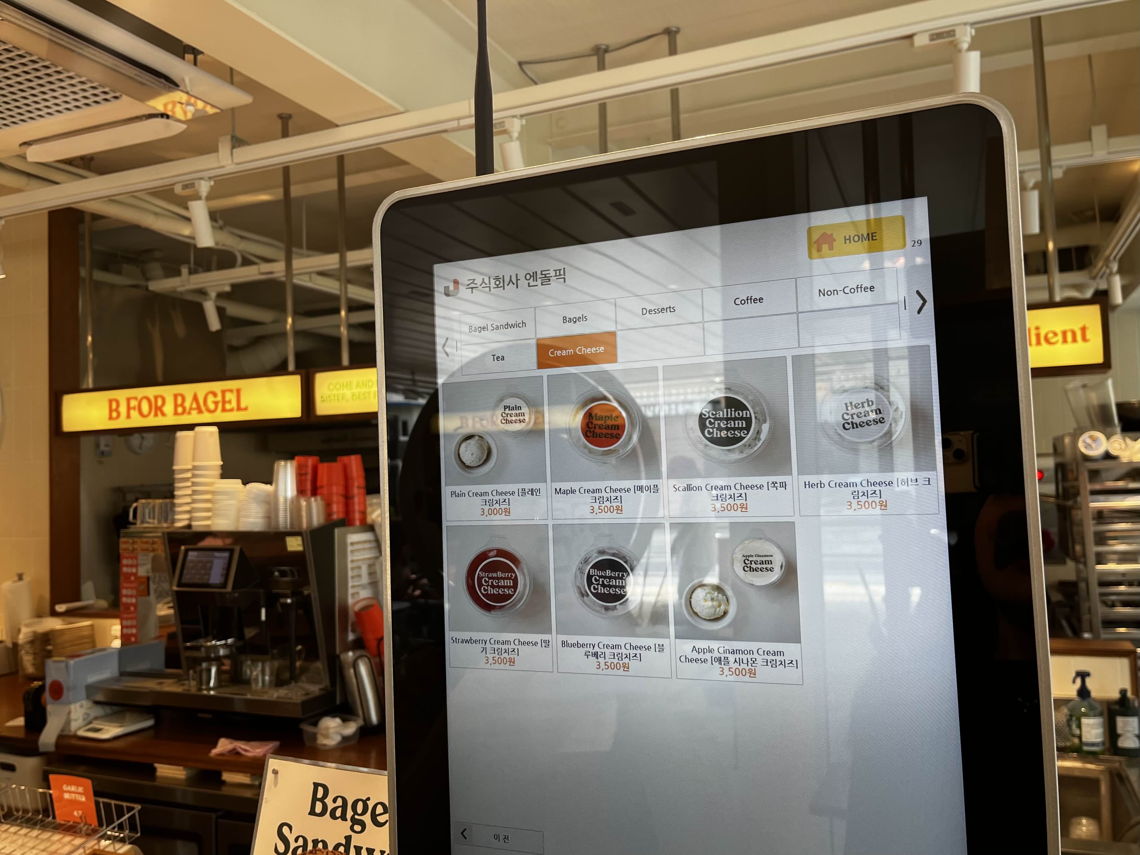 ✔️비포베이글 역삼점에서는 매장 내 비치된 키오스크를 통해 주문이 가능합니다