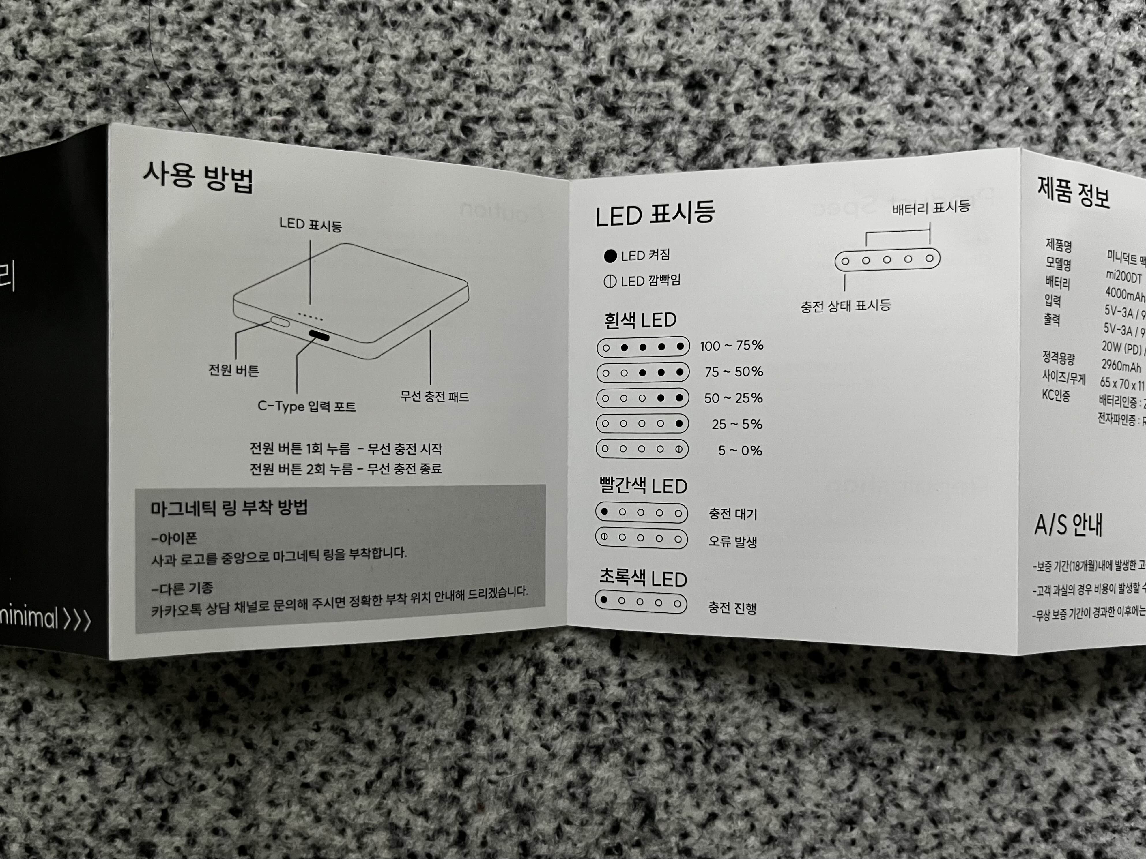 용량은 4,000mAh로 요즘 나오는 보조배터리에 비해 적은 편입니다