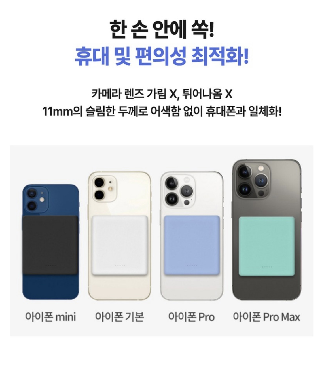 아이폰 미니 기종 카메라 렌즈를 가리는 일이 없는 카드보다 작은 미니 사이즈!
