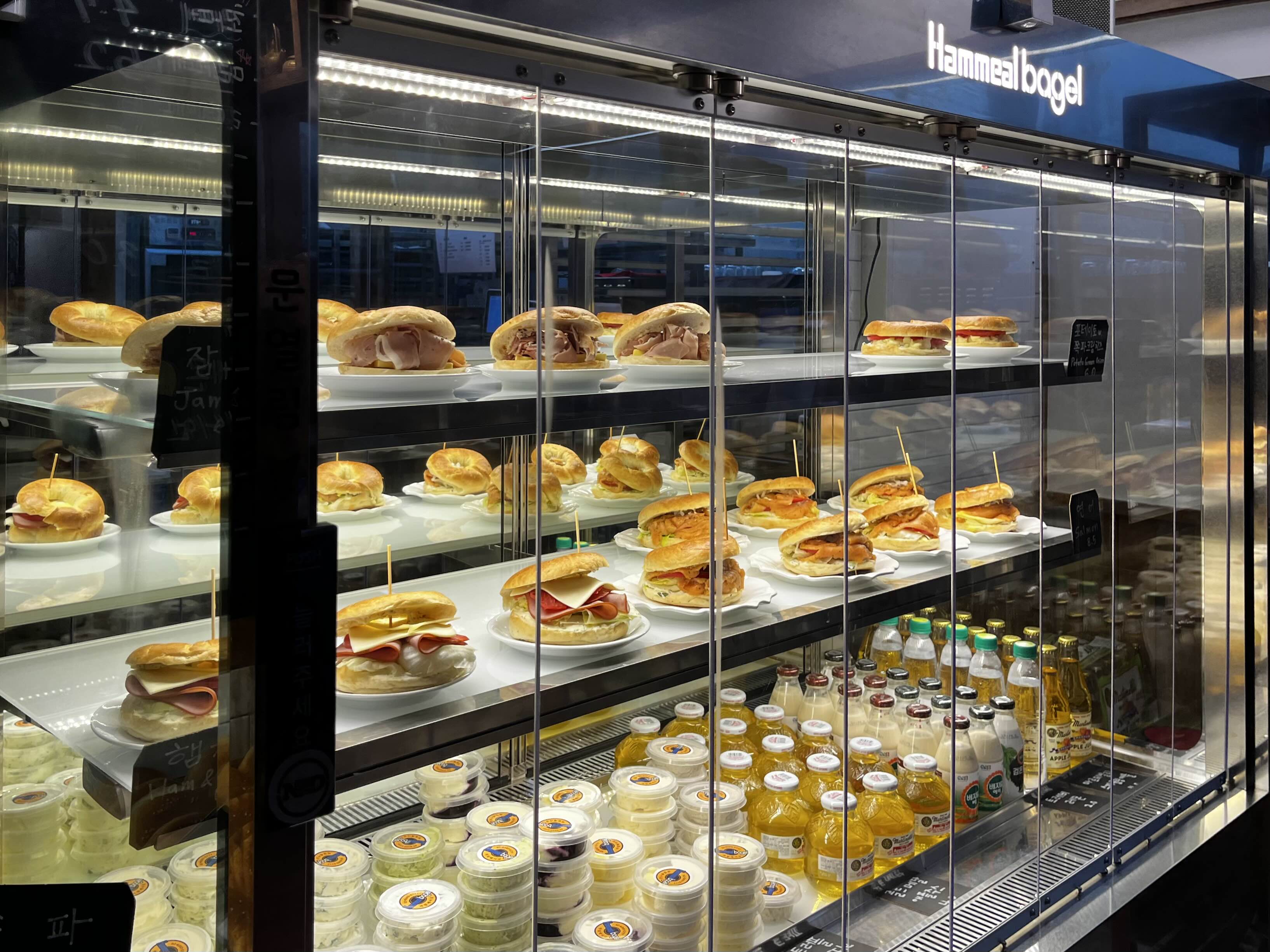 기본 베이글은 상온 매대에 진열되어 있고, 샌드위치 종류는 냉장보관되어 있더라구요❄️