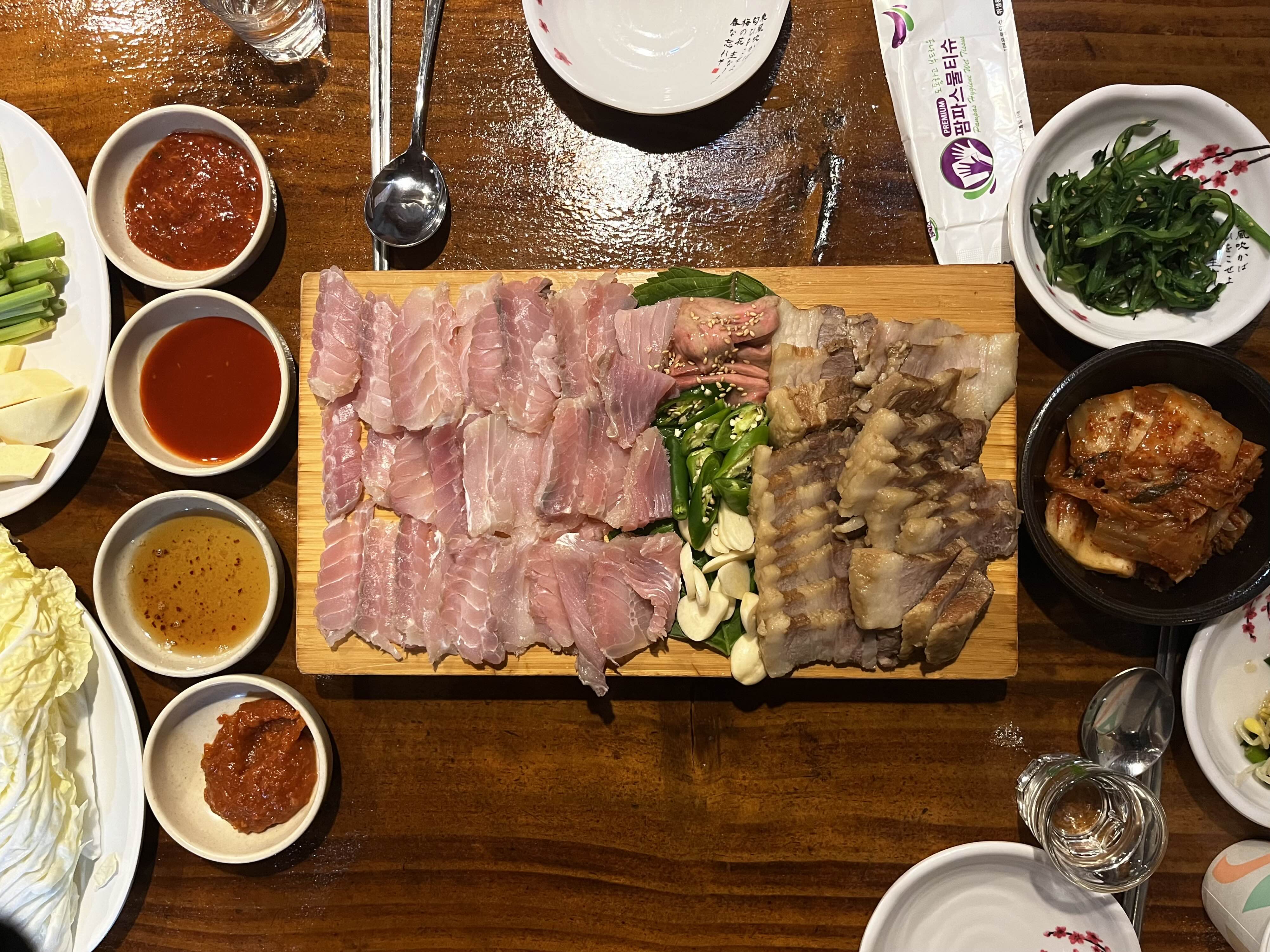 아쉬운 점은 아무래도 삼합으로 쌈까지 싸 먹는 음식이라 조금만 먹어도 배가 금방 부르게 된다는 점💦