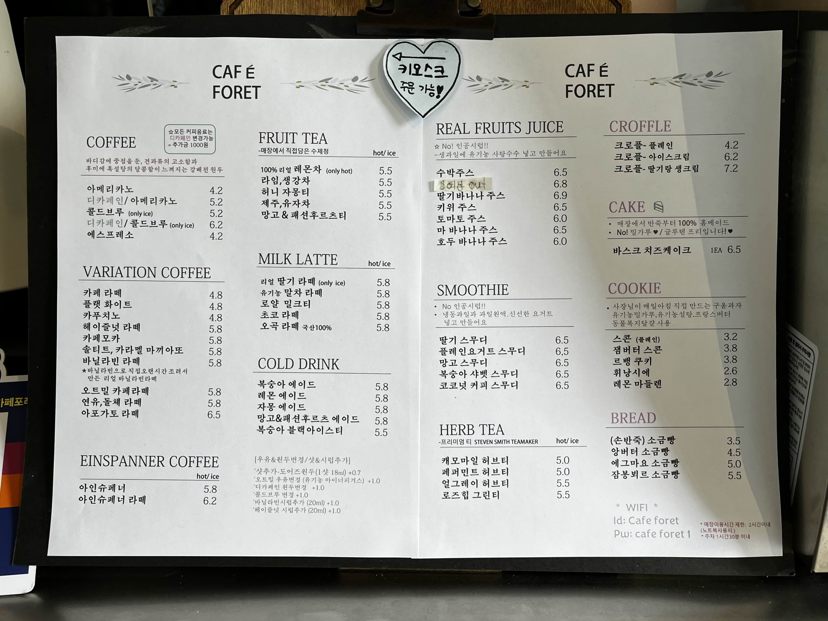 카페포레 주문은 카운터에서도 가능하고, 매장 내 비치된 키오스크를 통해서도 하실 수 있습니다