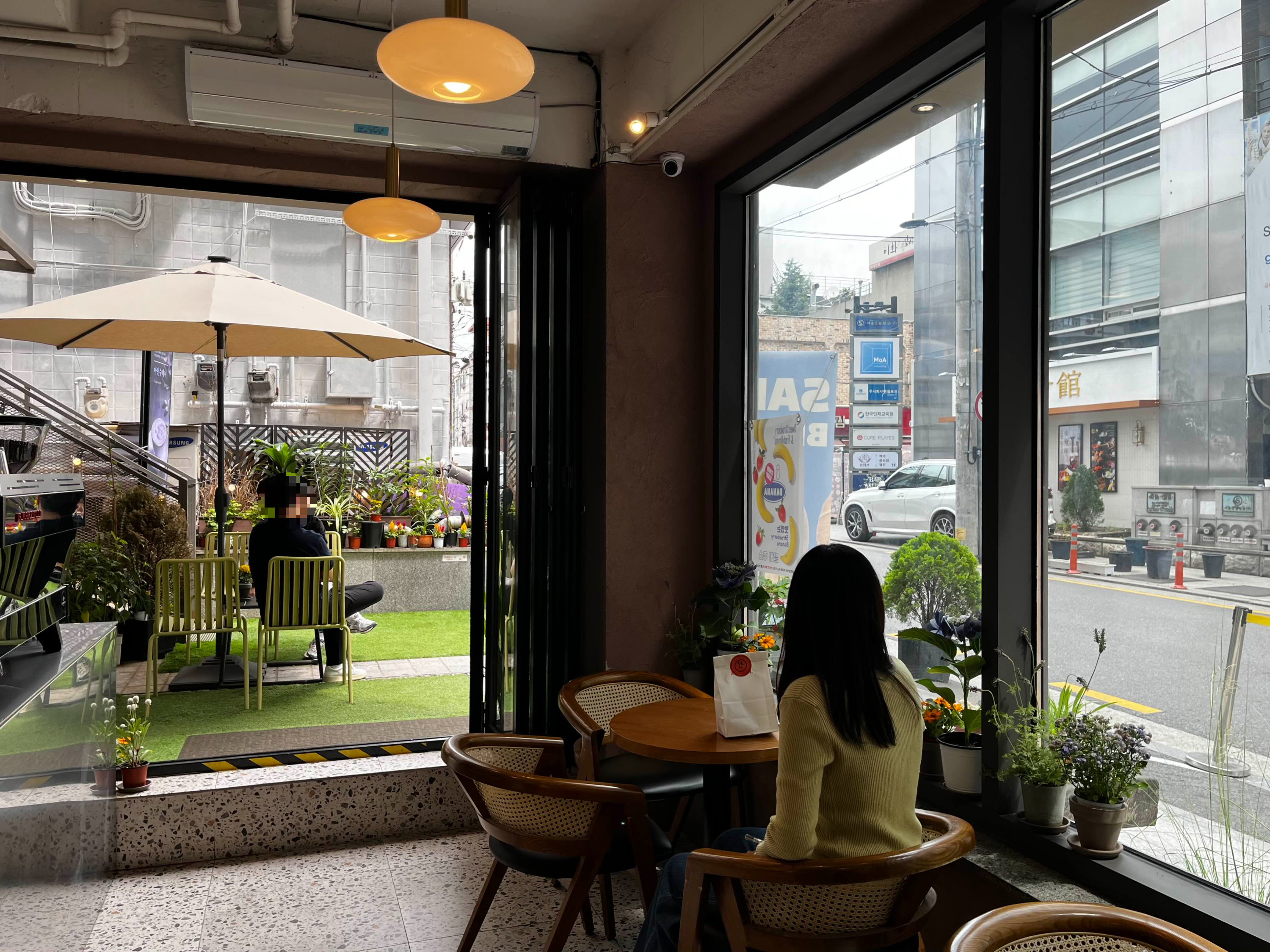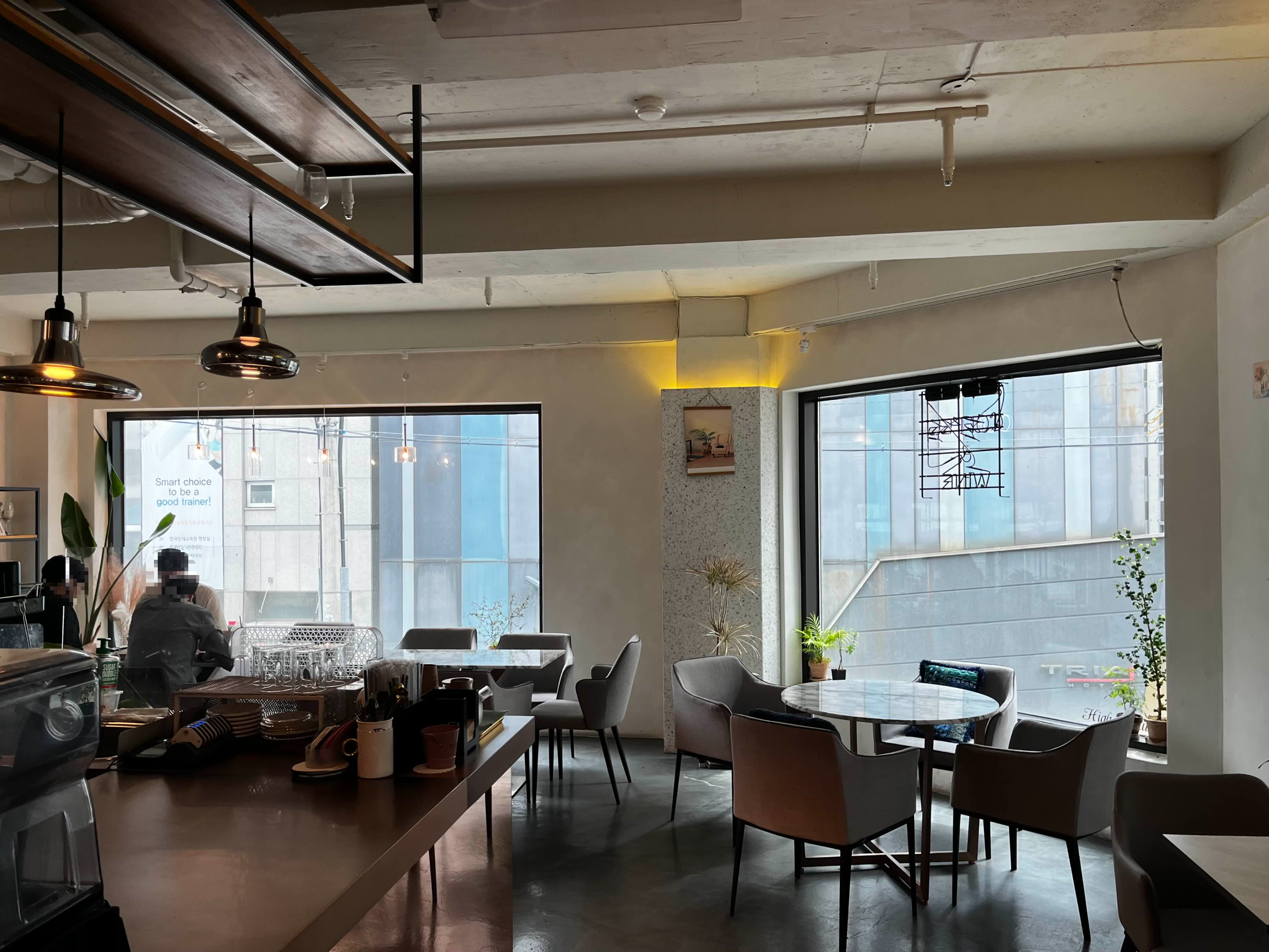 2층 메인홀은 1층과 비슷한 인테리어로 되어있고, 빌딩 숲 사이지만 창문이 큼지막해서 시원한 개방감이 느껴져요🍃