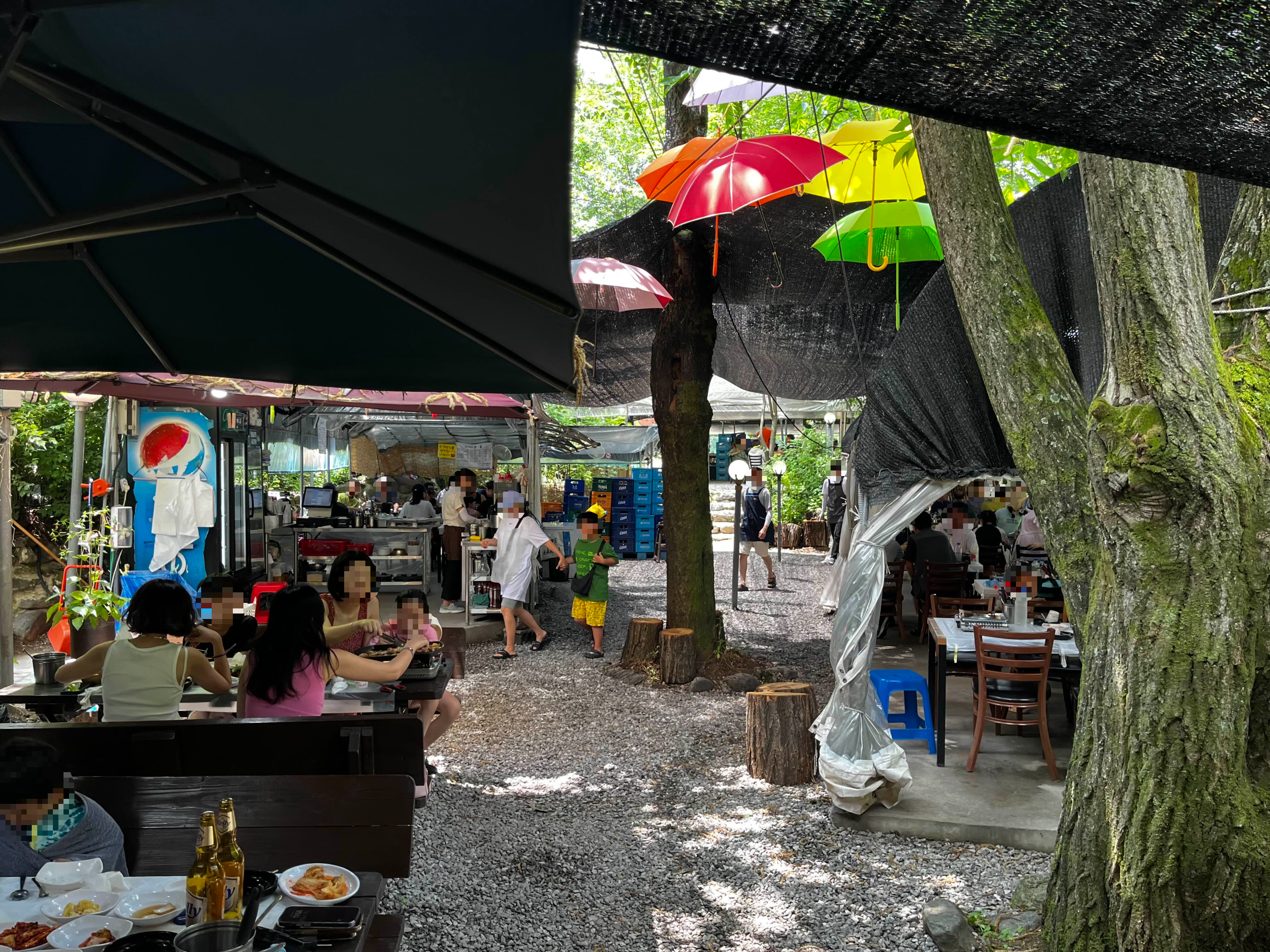 계곡 바로 옆 테이블은 아니지만, 계곡 쪽에서 시원한 바람이 솔솔 불어와 덥진 않았어요