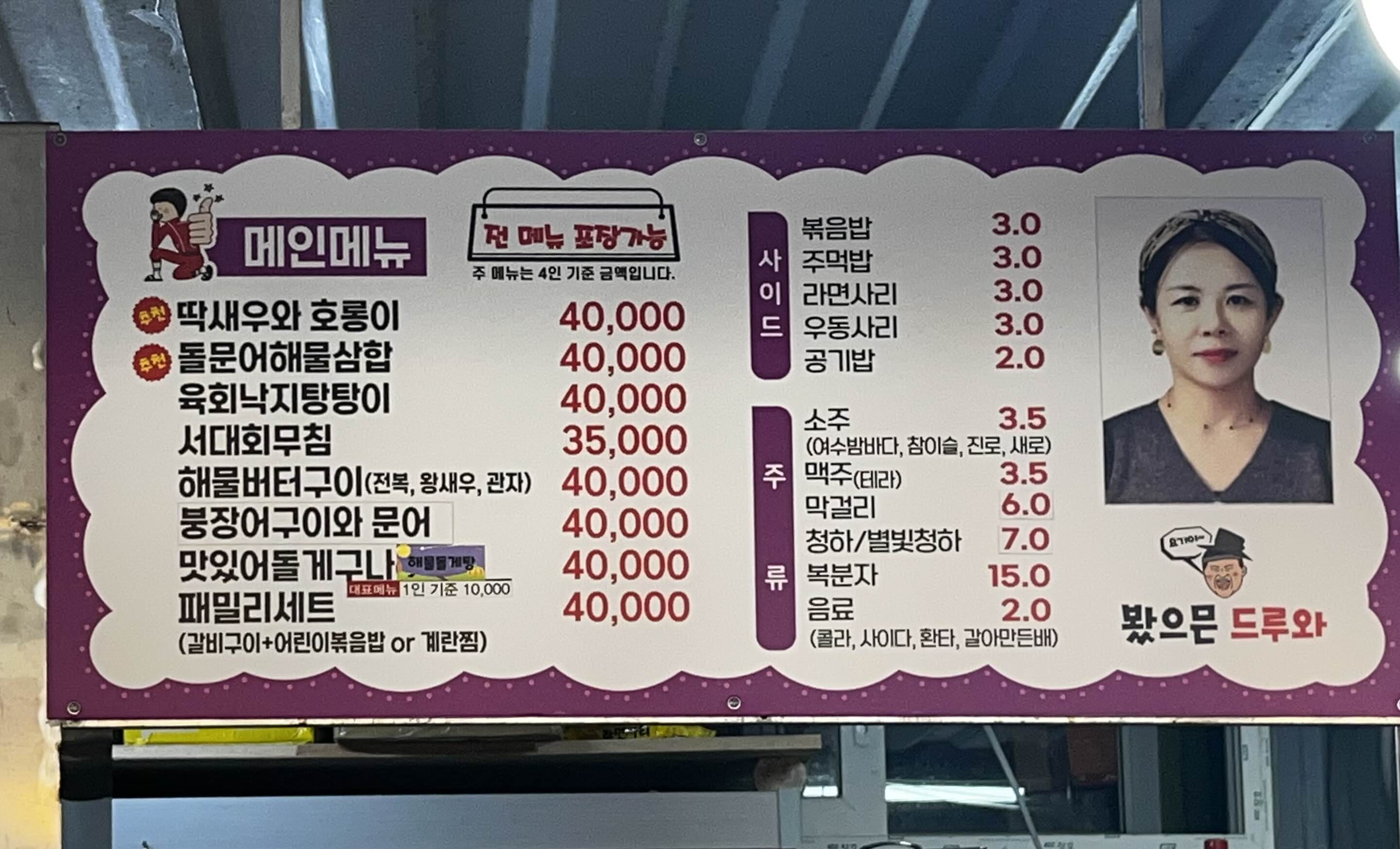 여수 낭만포차 「봤으면 드루와」 메뉴 및 리뷰