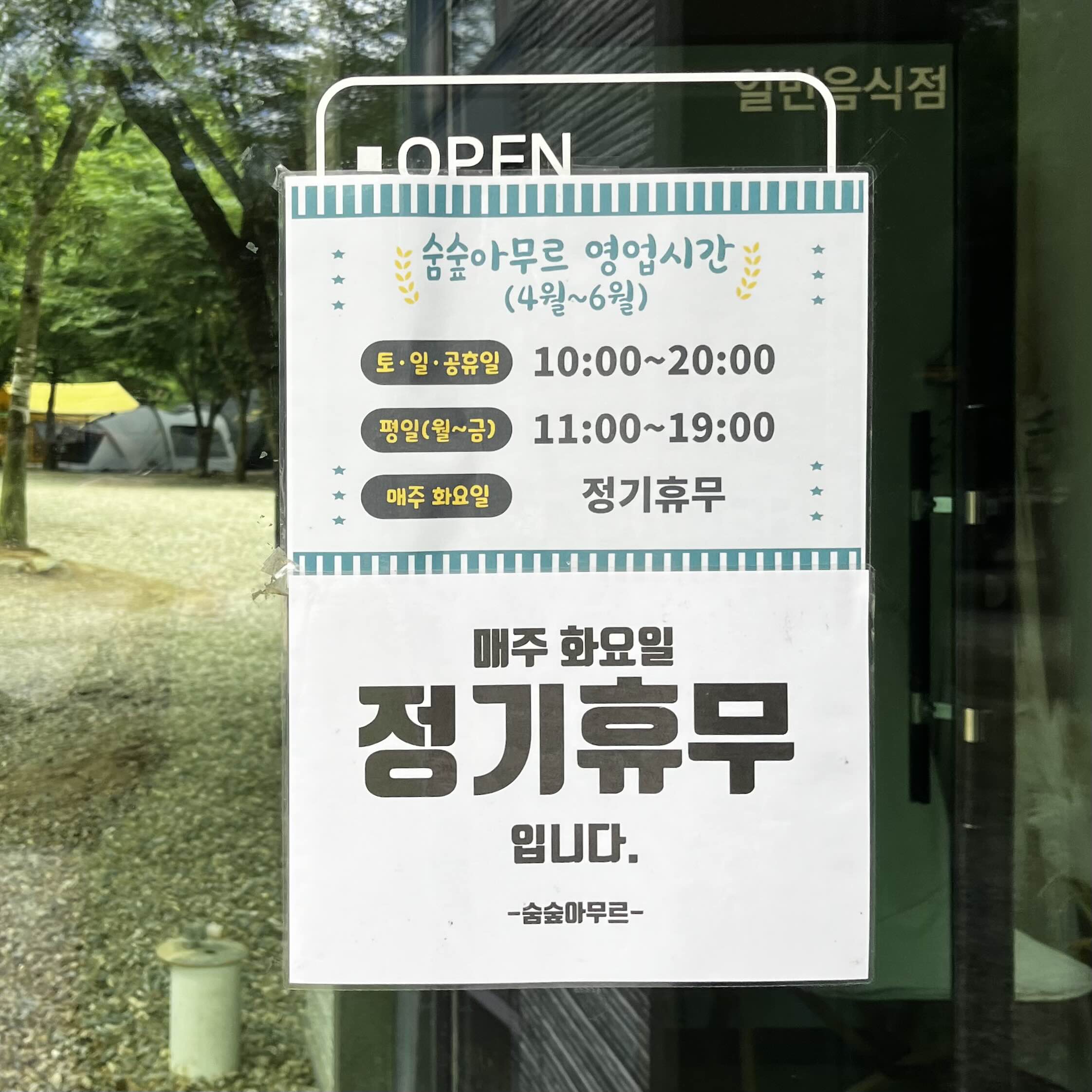 숨숲아무르 카페의 운영 시간 안내입니다 🌳