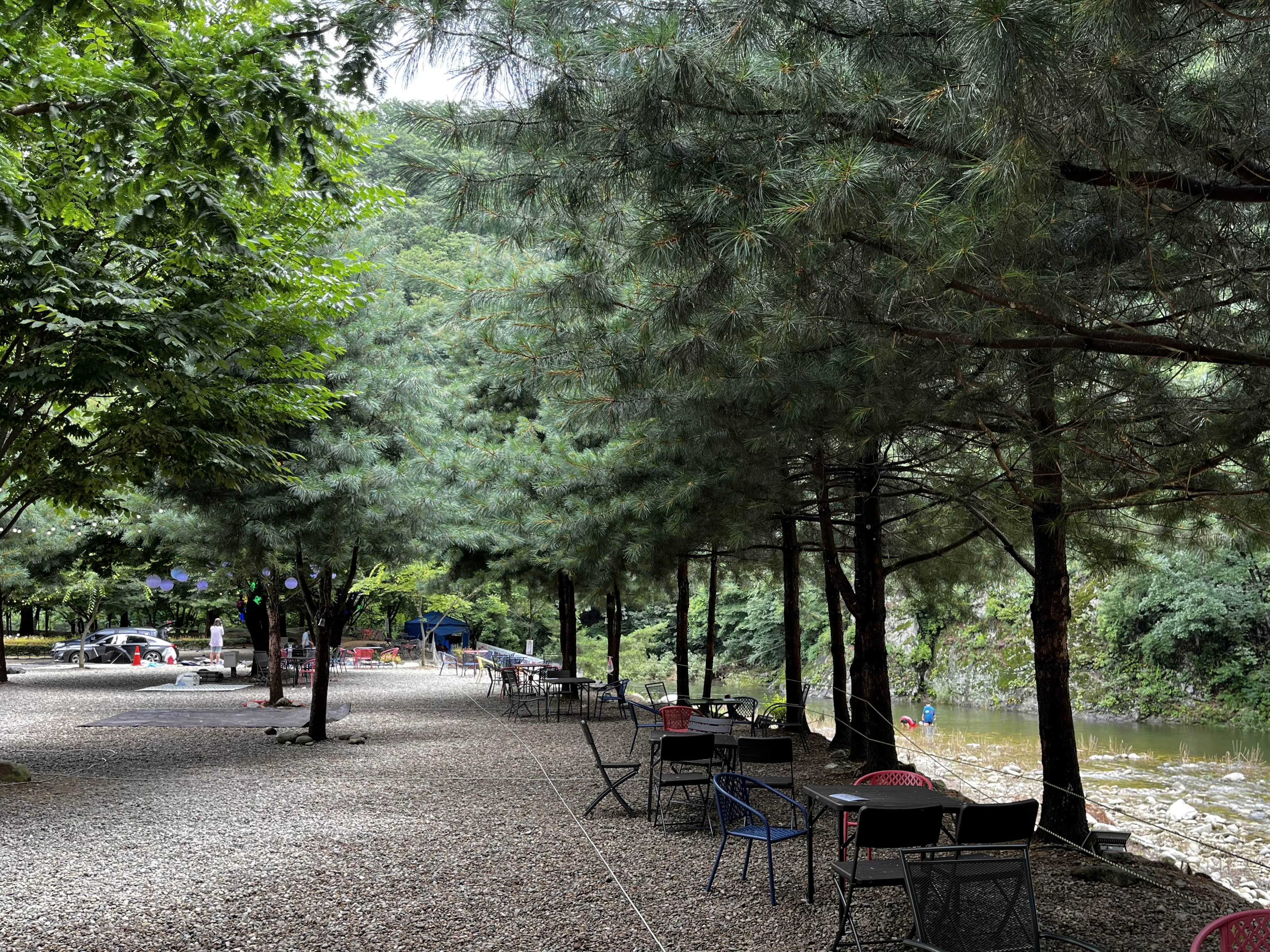 위에서 보여드린 계곡을 따라 쭉 이어진 야외 테이블 말고도