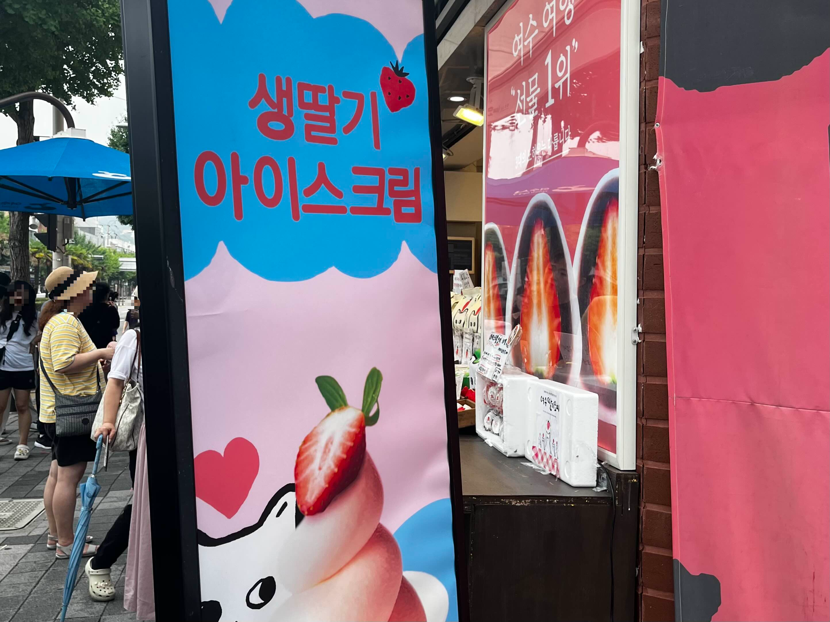 추가로, 모찌뿐 아니라 시원한 생딸기 아이스크림도 판매하고 있습니다🍓🍨❄️
