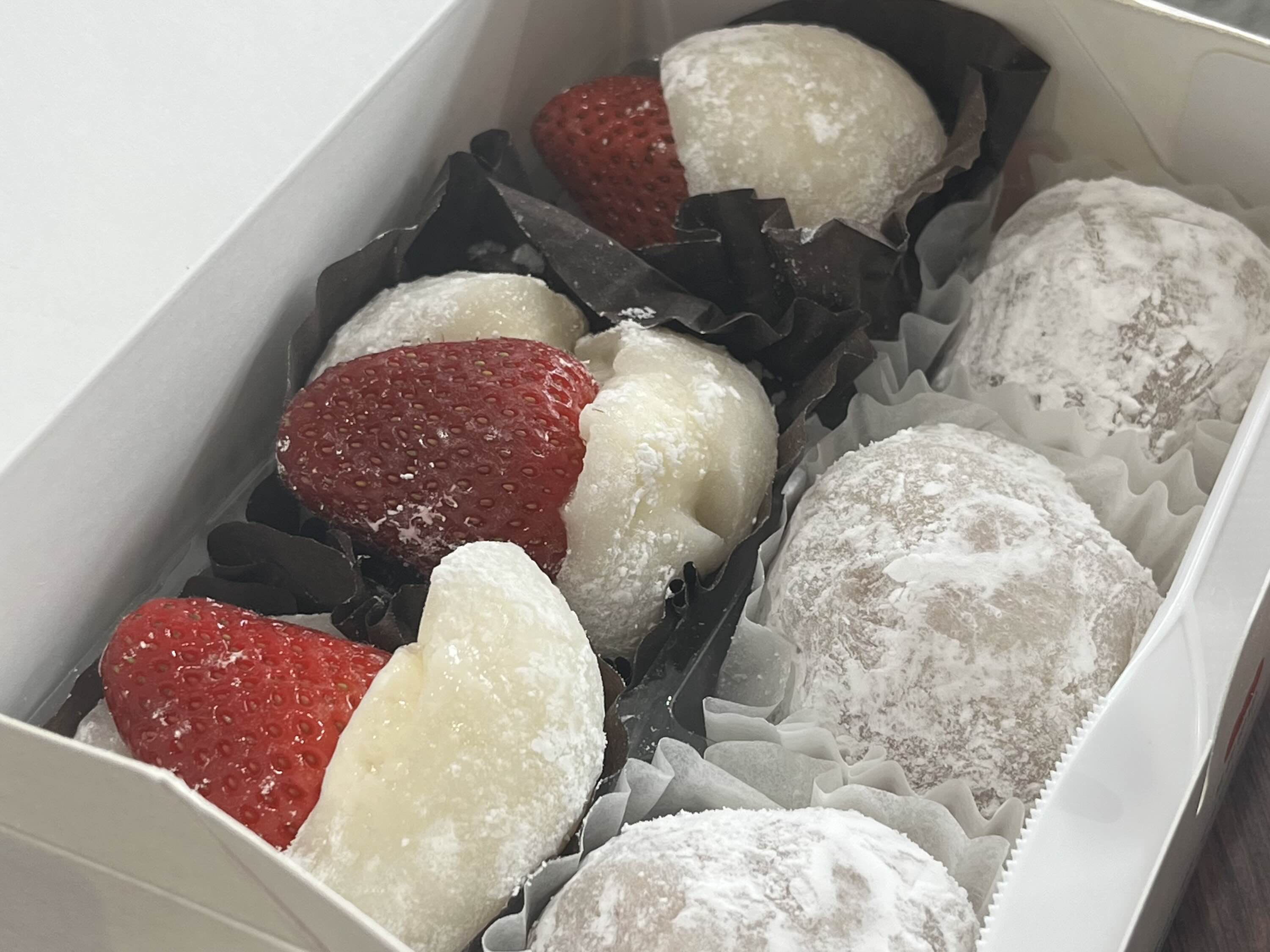 겉에서 봤을 때 딸기가 올라와 있는 건 크림치즈, 딸기가 숨겨진 모찌는 앙금모찌🍡