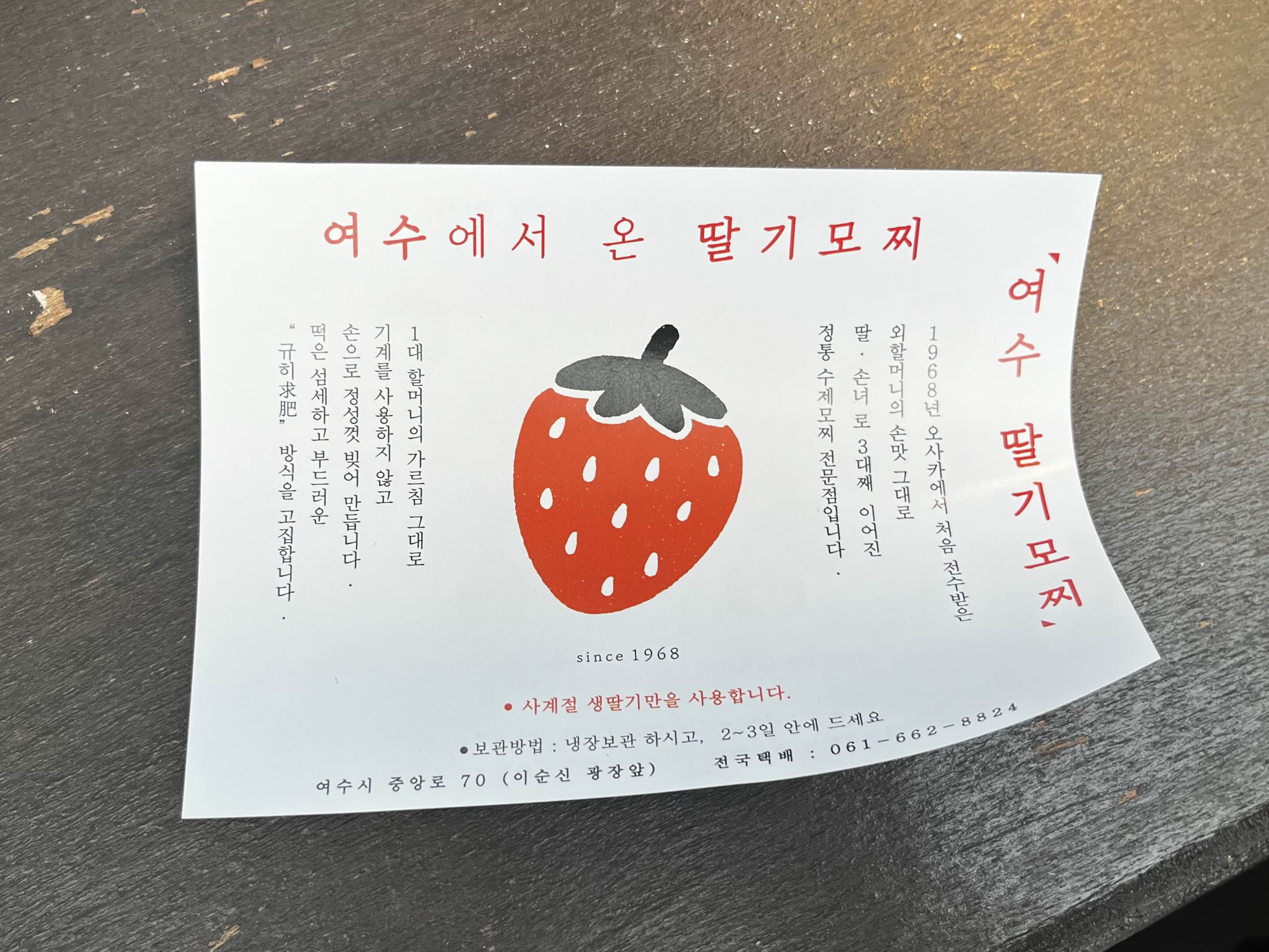 1968년도부터 3대째 이어오고 있는 여수딸기모찌 본점입니다🍓🍡