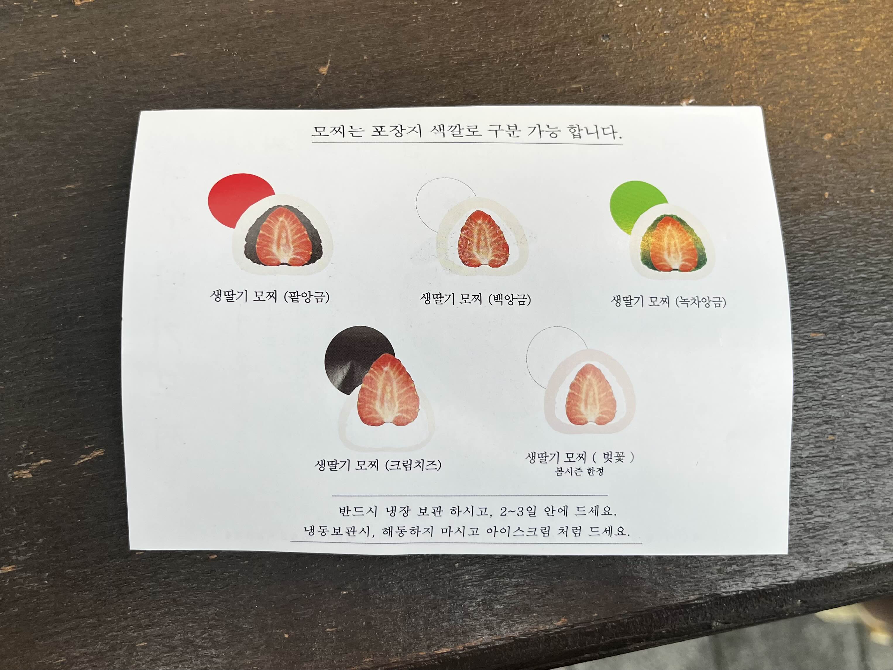 각 모찌마다 들어가는 생딸기 또한 제철이 아니라 그런 건지 달달한 맛이 거의 없었어요❌