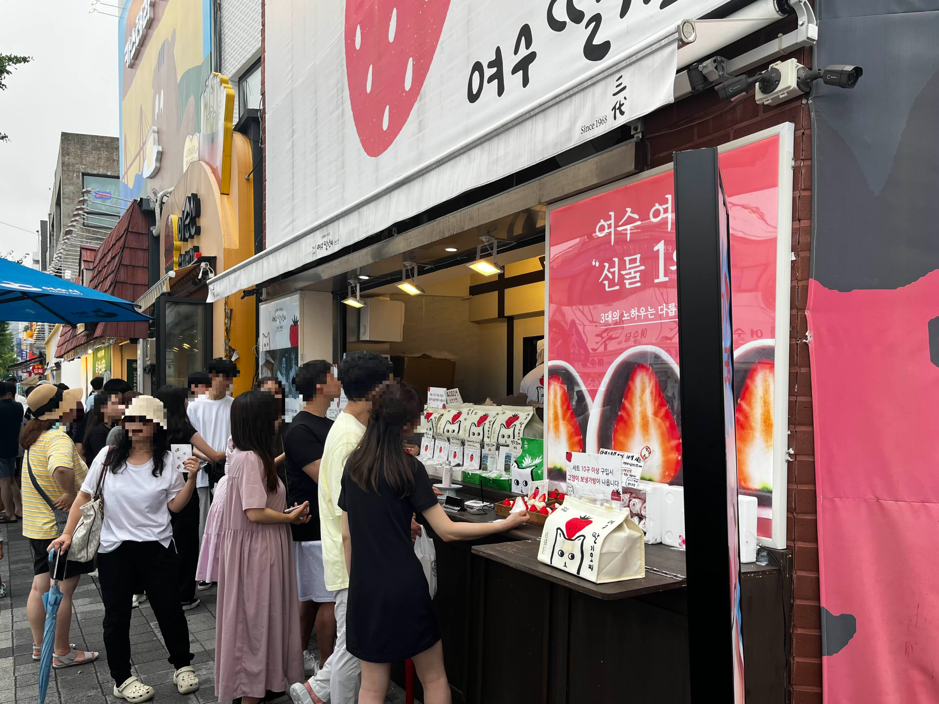 3대째 이어온 여수딸기모찌의 본점답게 놀이공원처럼 엄청난 대기줄..!