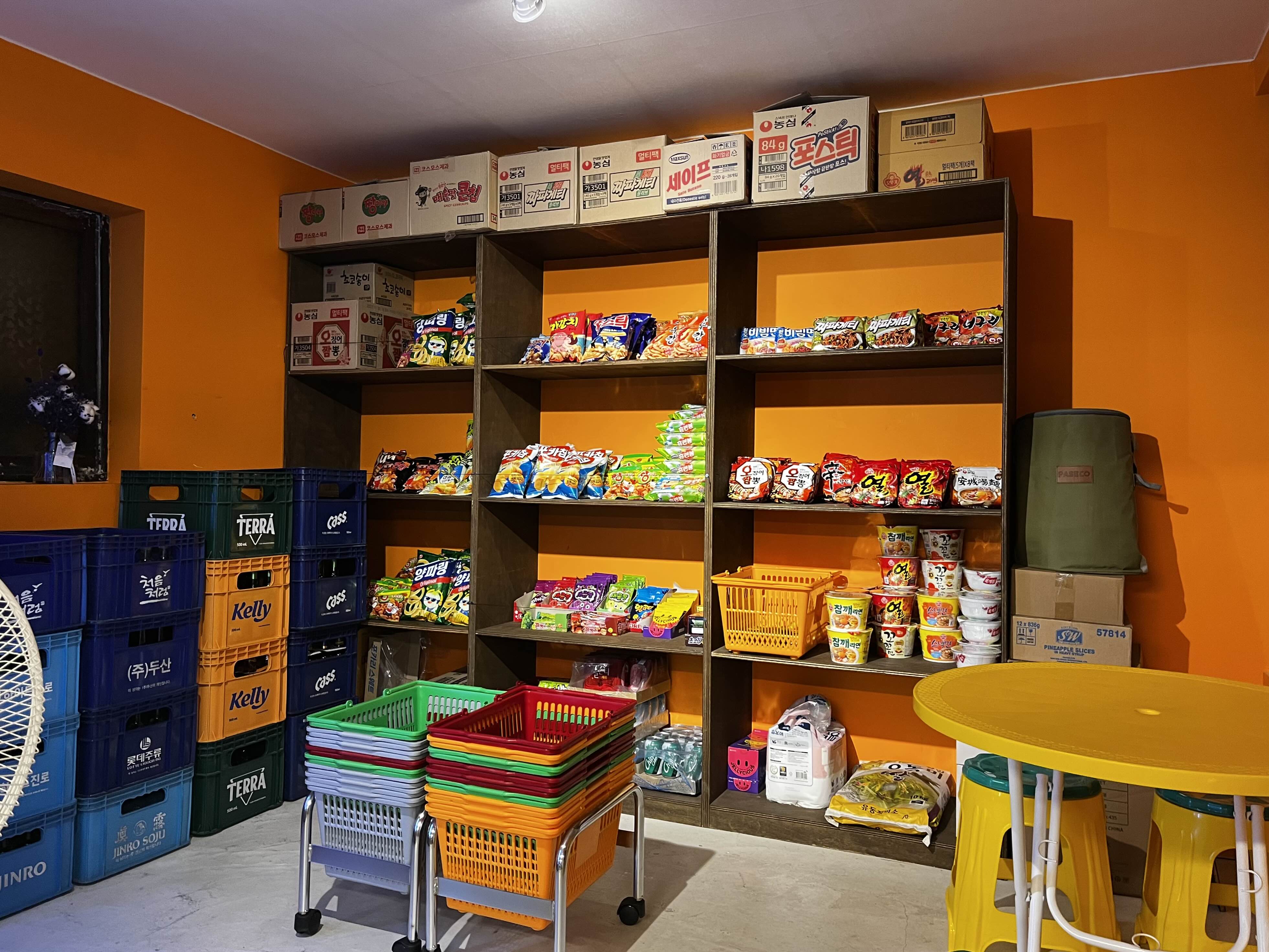 과자, 젤리, 사탕, 라면 등 간단한 주전부리 맥주안주가 다양하게 준비되어 있어요🌈