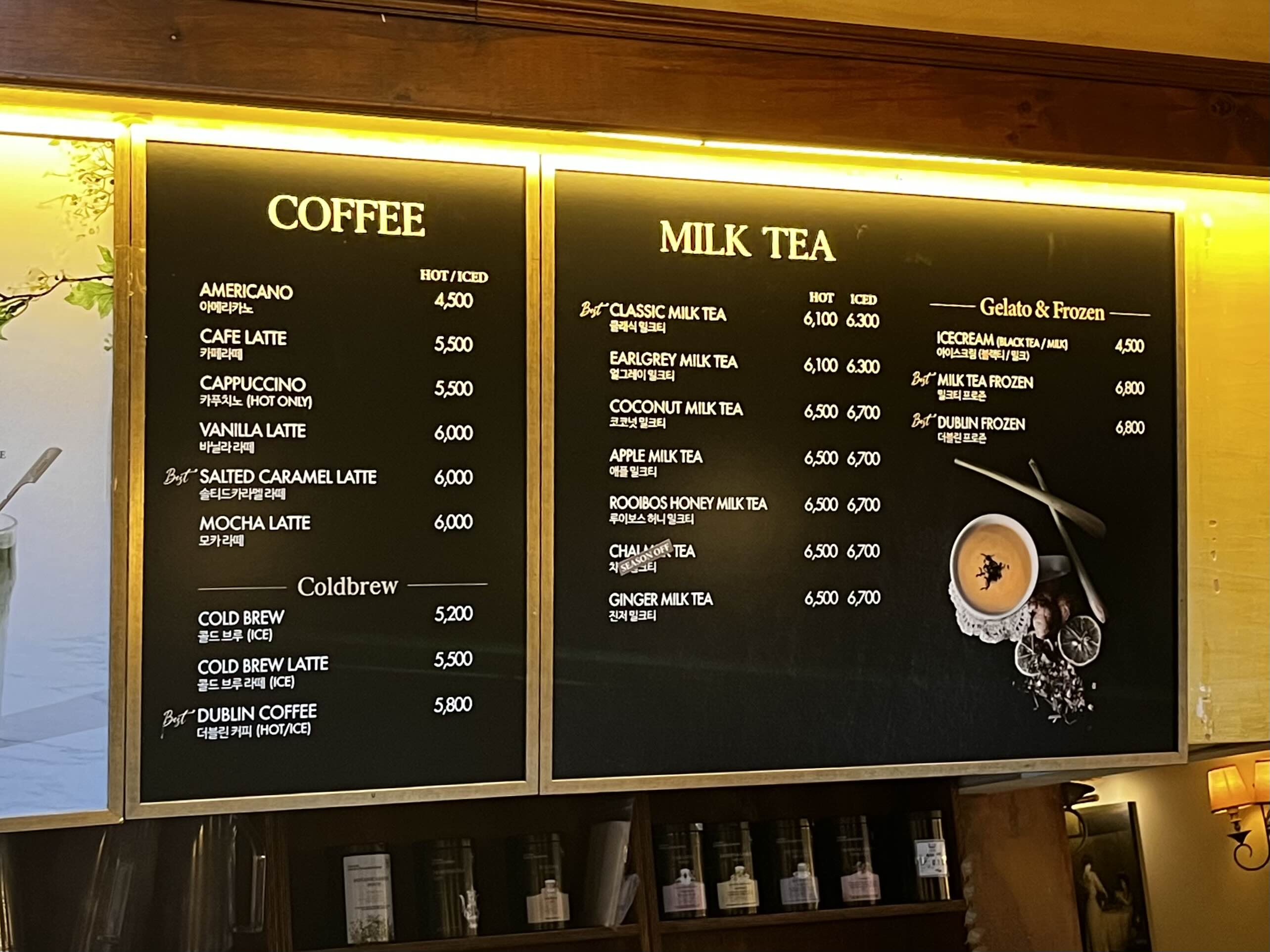 시그니처 메뉴인 밀크티를 베이스로 한 음료들이 많고, 클래식한 카페 분위기를 느끼실 수 있는 곳이에요