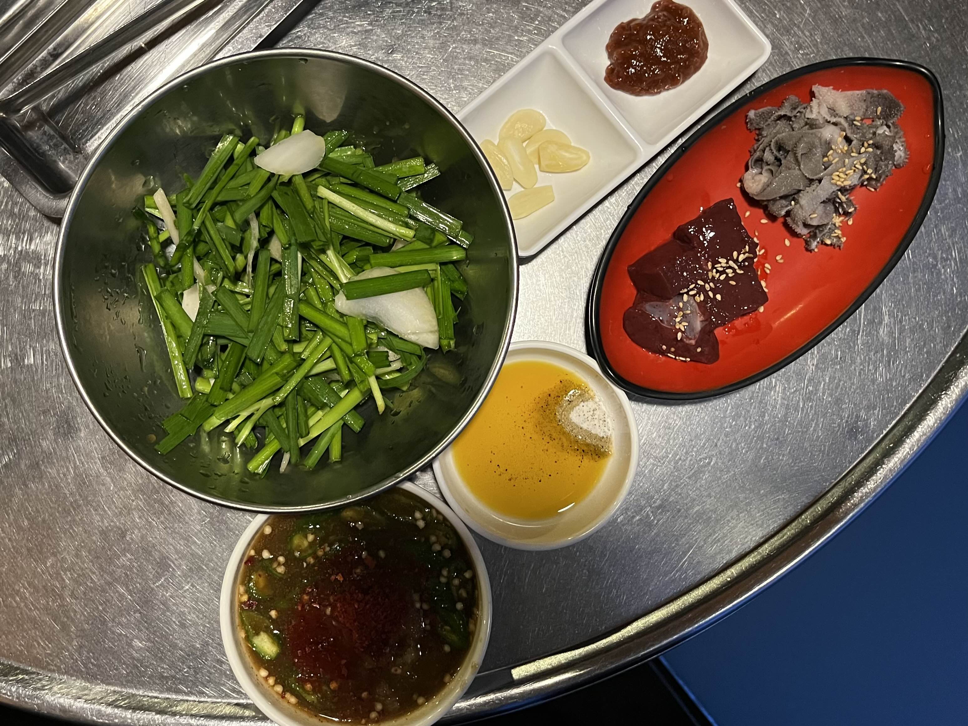 곱창집 필수 기본안주인 생간 / 천엽은 참기름 콕콕 찍어 냠냠