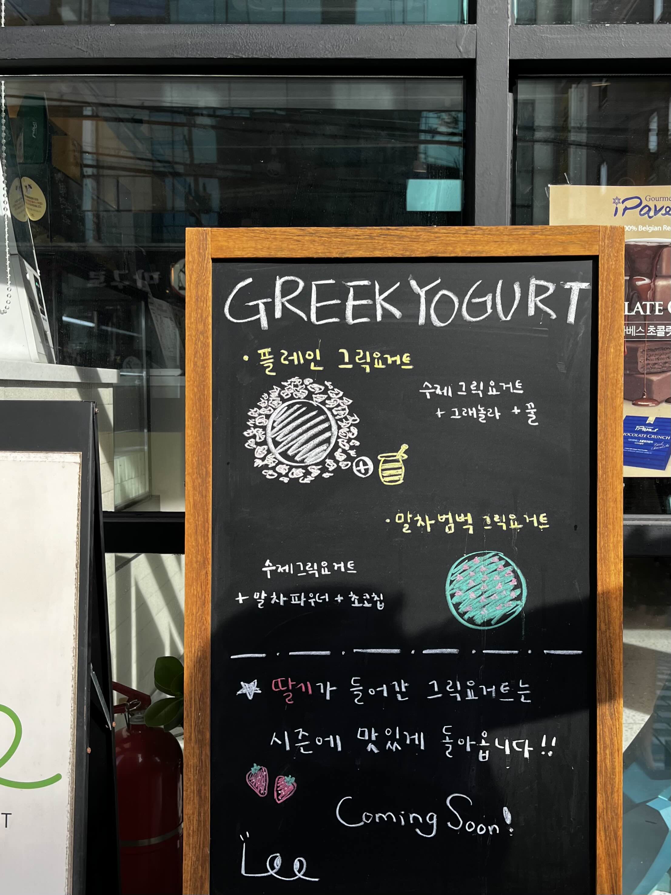 제철과일을 이용한 그릭요거트는 플레인 / 치즈케이크딸기 / 딸기범벅 / 말차범벅 네 종류🍨