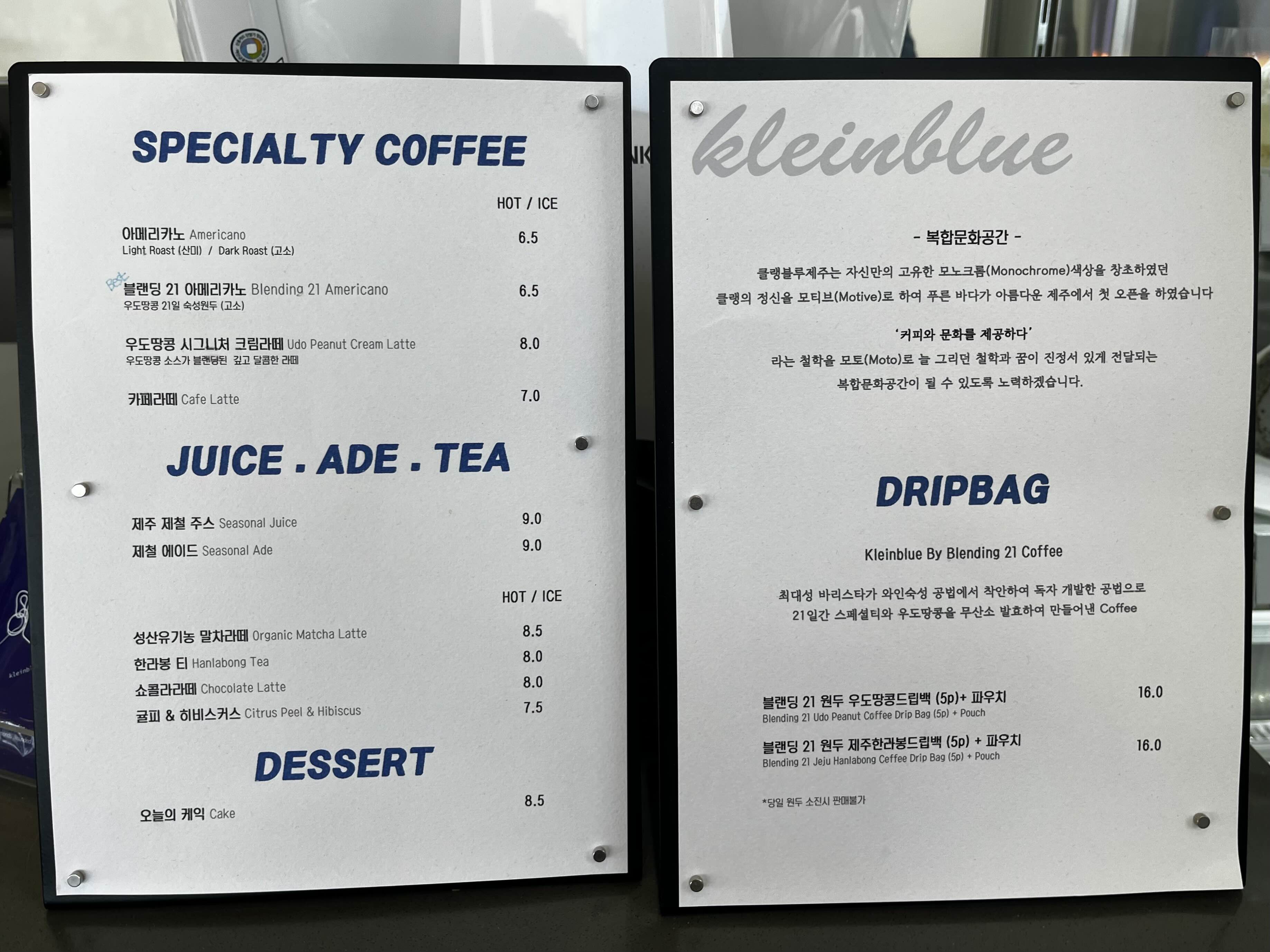 가장 신기했던 메뉴는 역시 클랭블루 시그니처 원두로 만들어지는 블랜딩 21 아메리카노