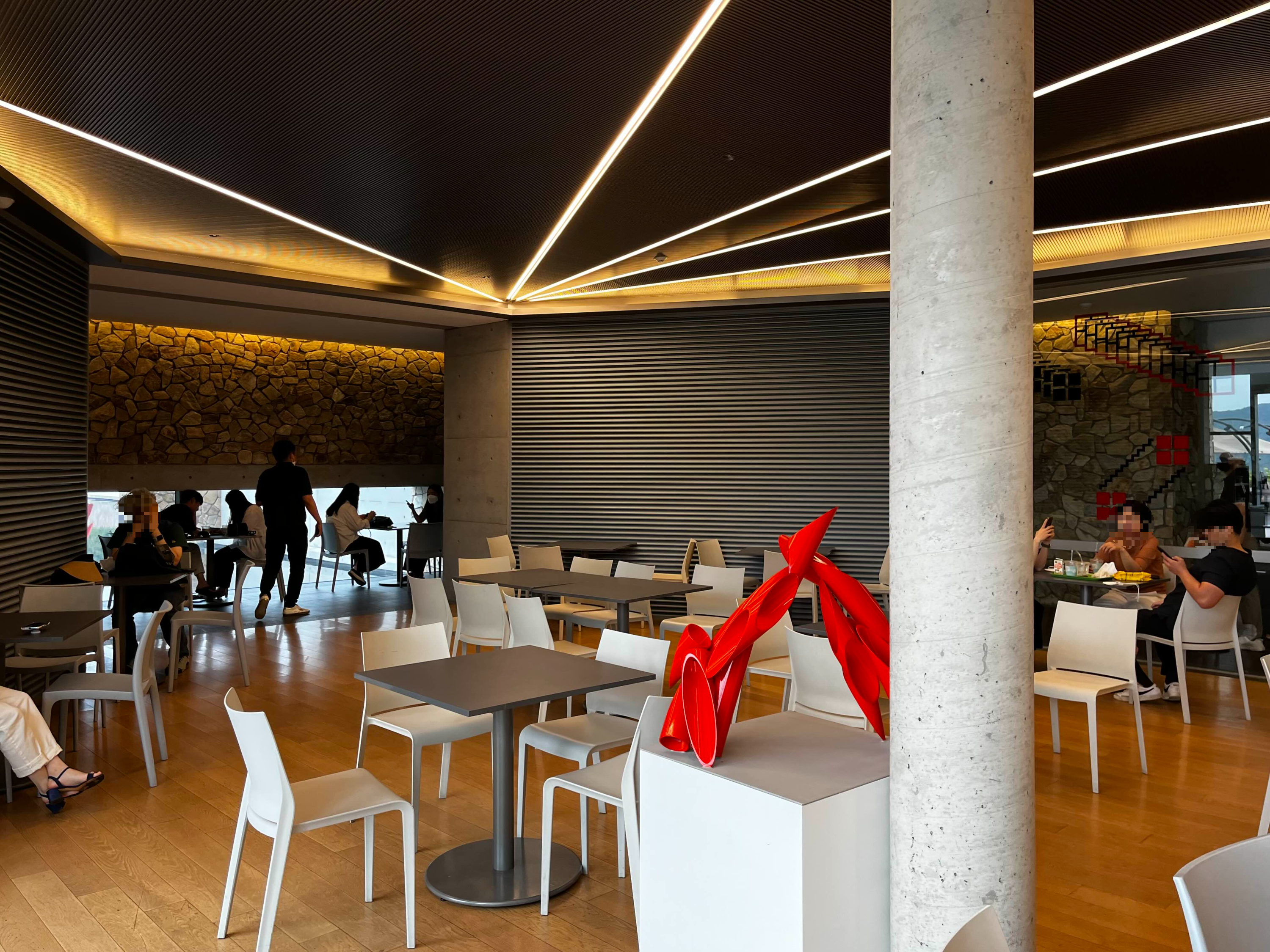 뮤지엄 산에 방문한 손님들을 위한 초대형 카페예요