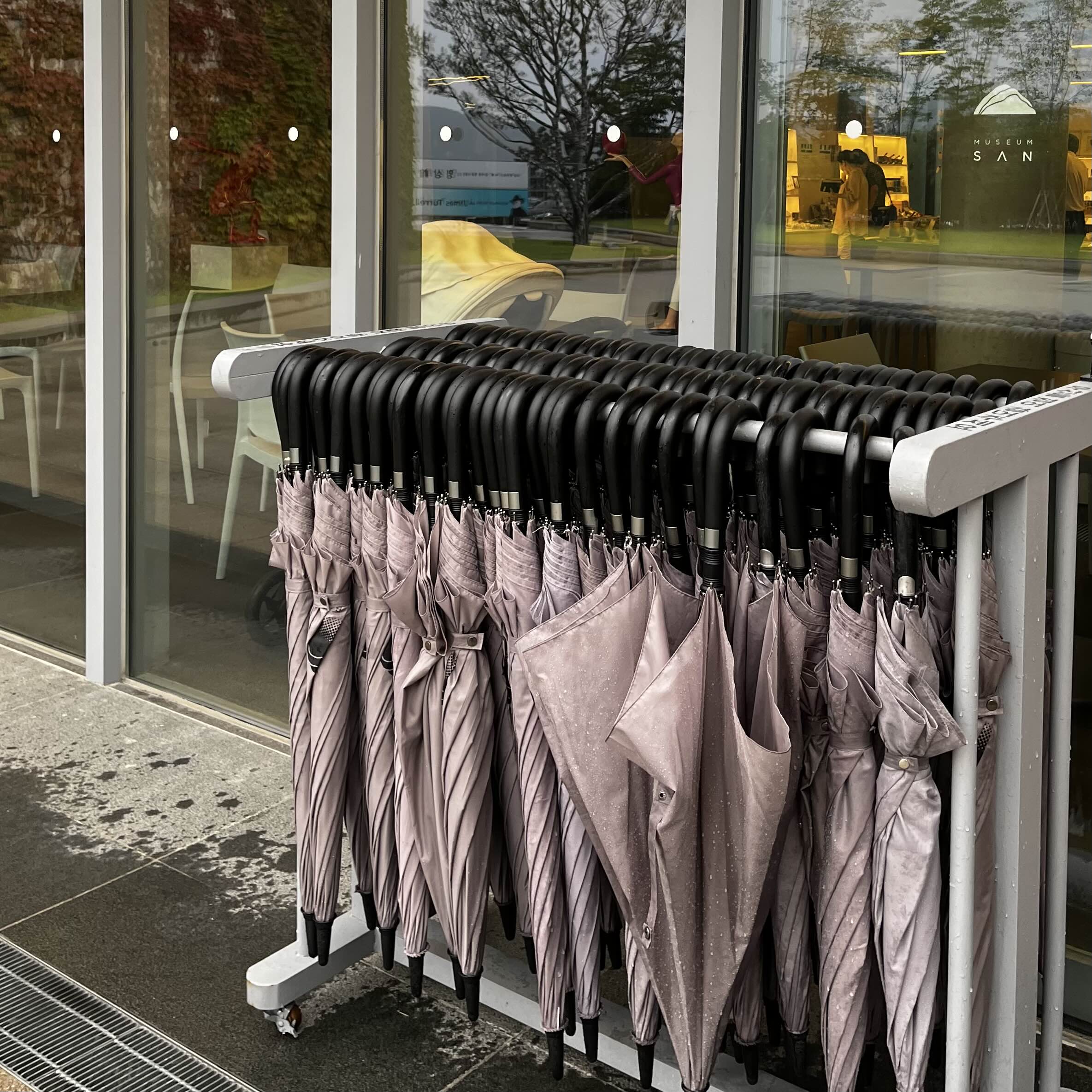 뮤지엄 산 건물과 건물은 야외로 이동하기 때문에 곳곳에 비치된 대여용 우산들 🌂
