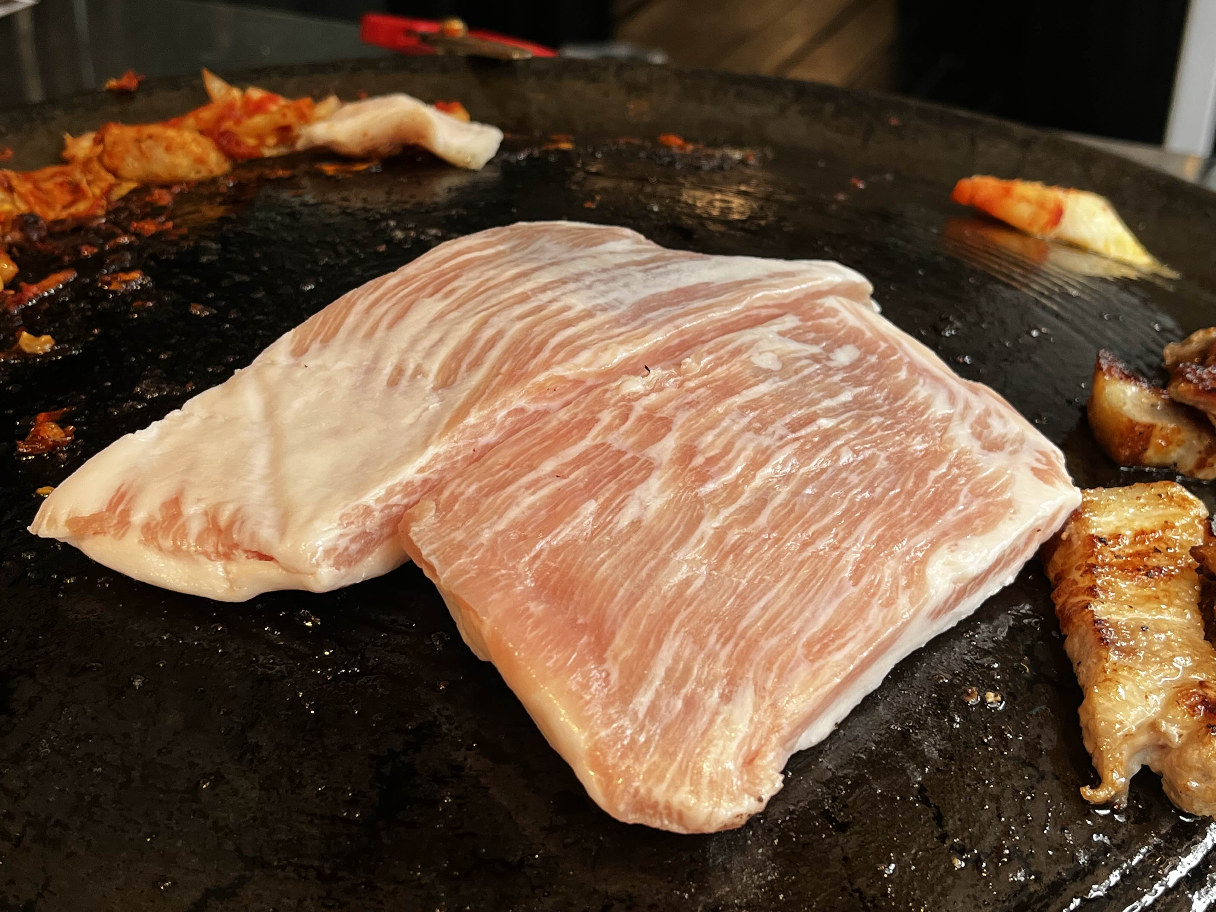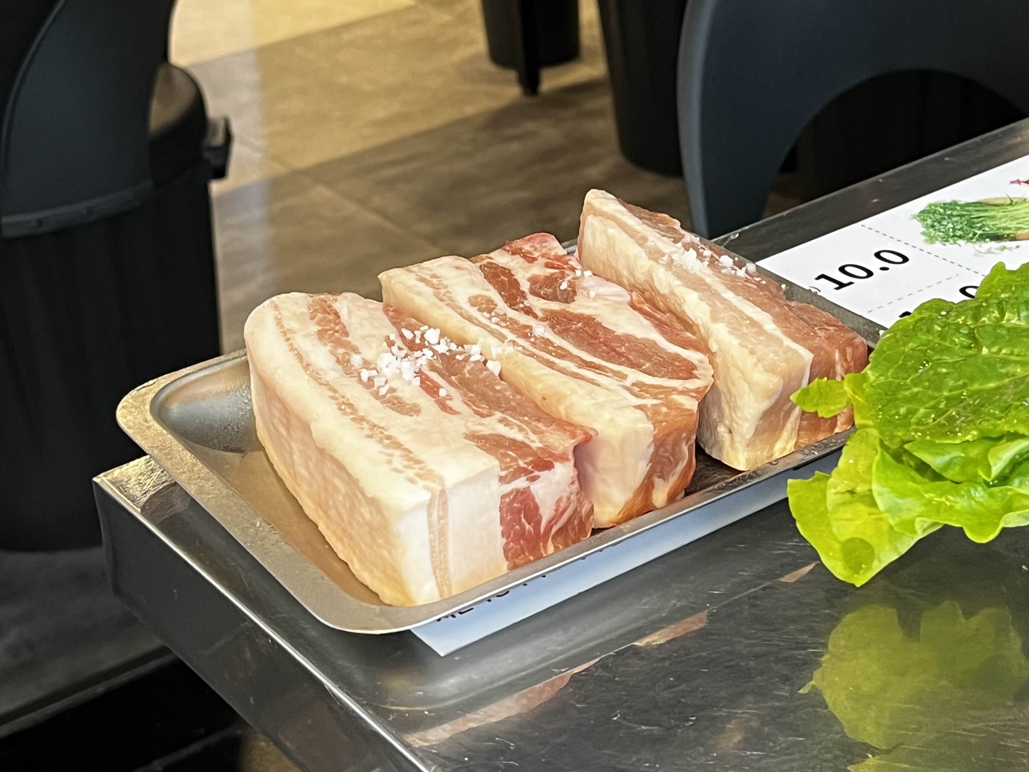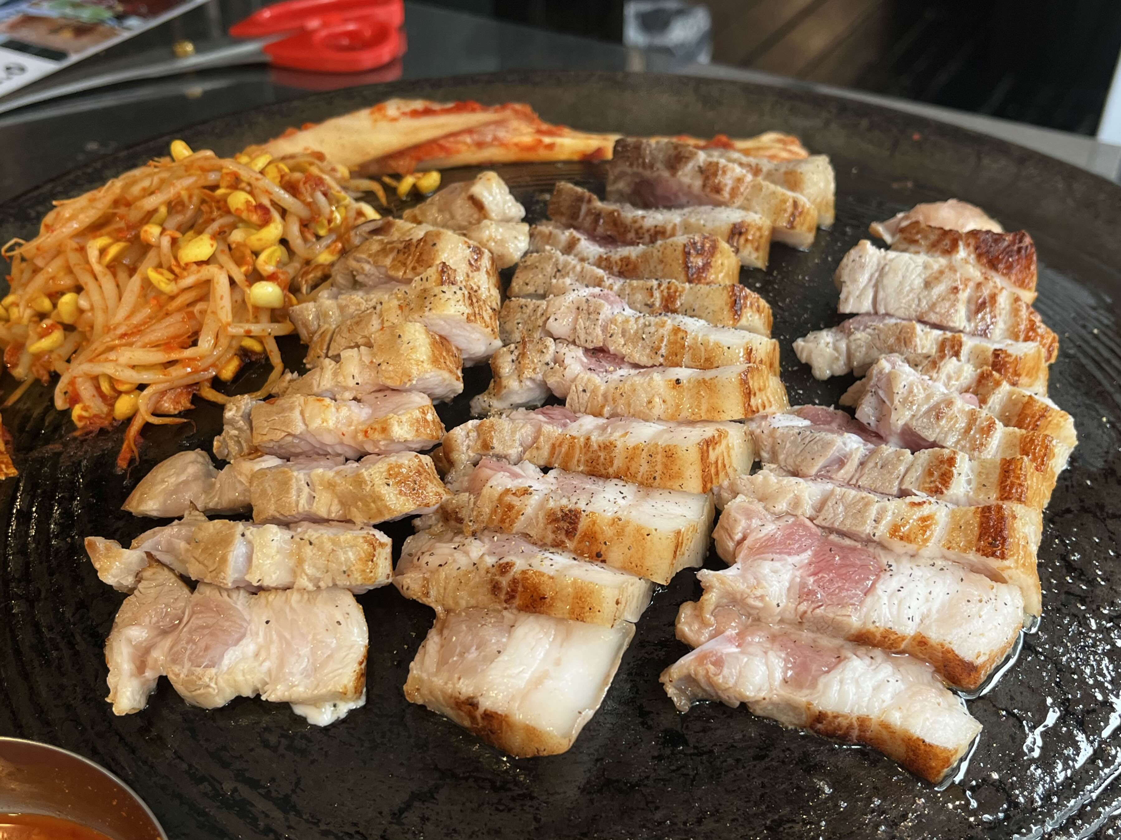 동두천솥뚜껑삼겹살에서는 겉면은 바삭하고 속은 촉촉한 마이야르 구이의 고기를 맛보실 수 있어요
