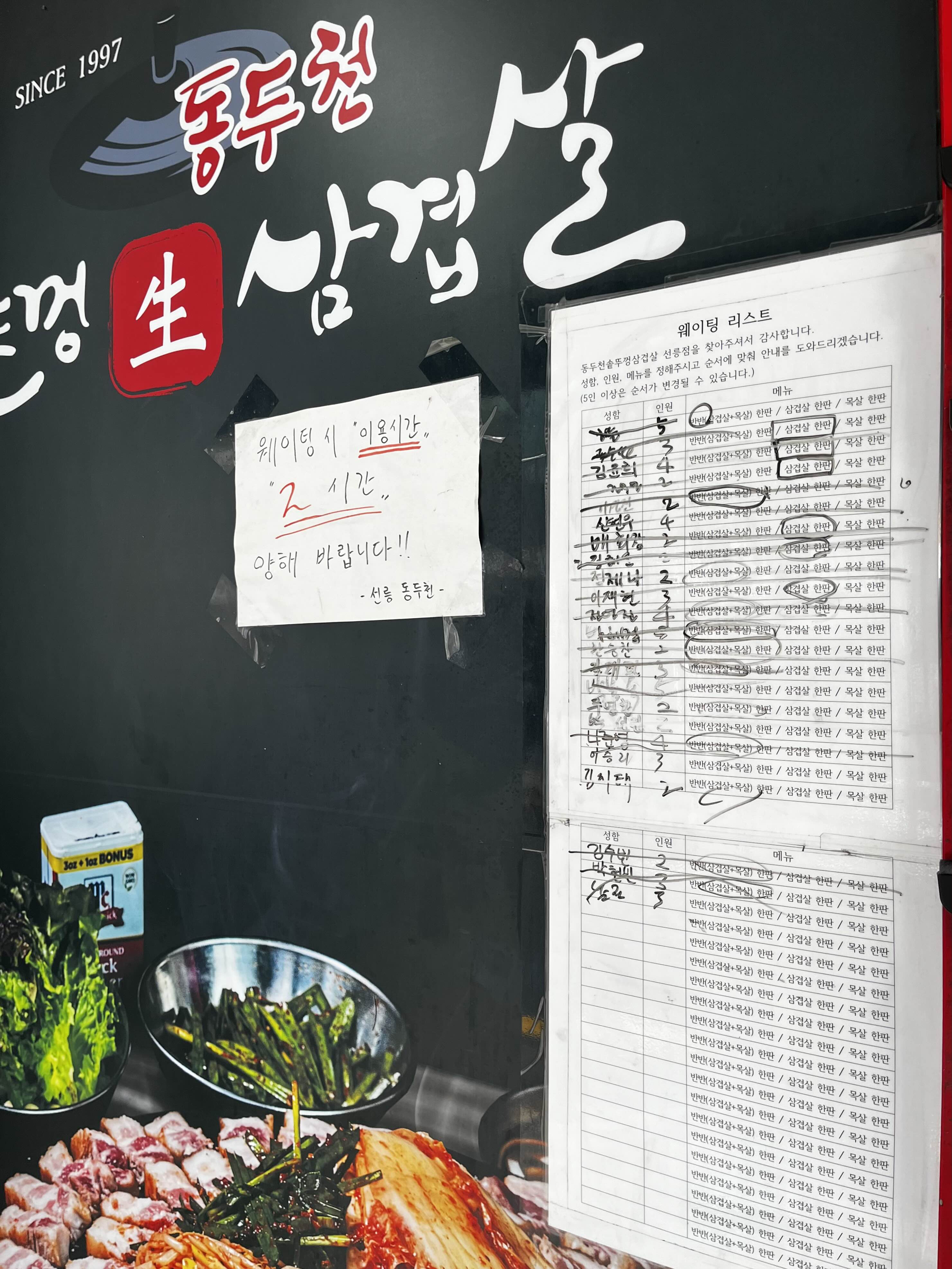 웨이팅이 있을 때 방문하신다면 리스트에 명단을 적고 매장 앞에서 대기해 주시면 된다고 합니다