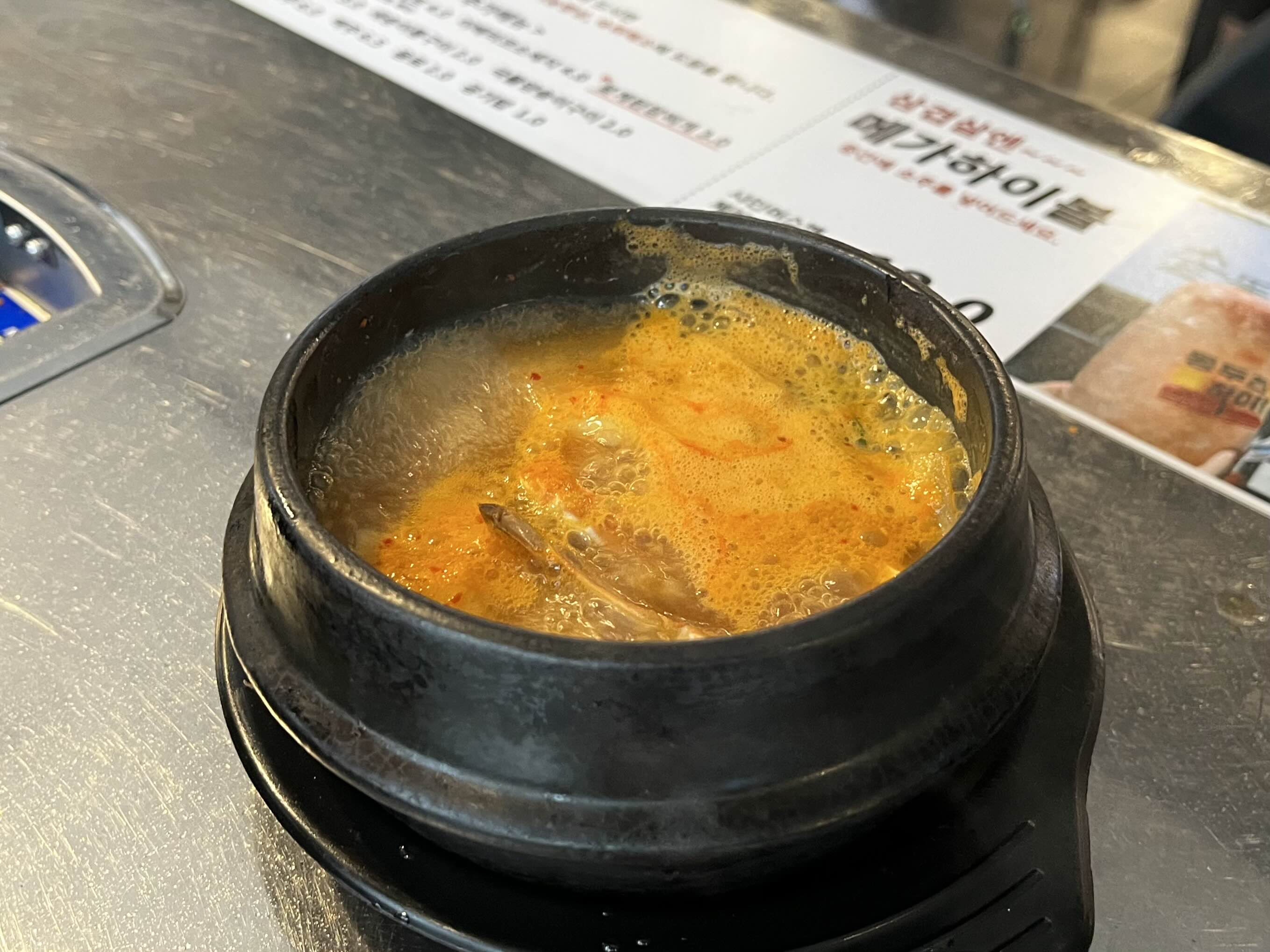 먹다보니 동두천삼겹살의 항정살 맛도 궁금해서 2인분과 꽃게된장찌개를 추가주문 했습니다