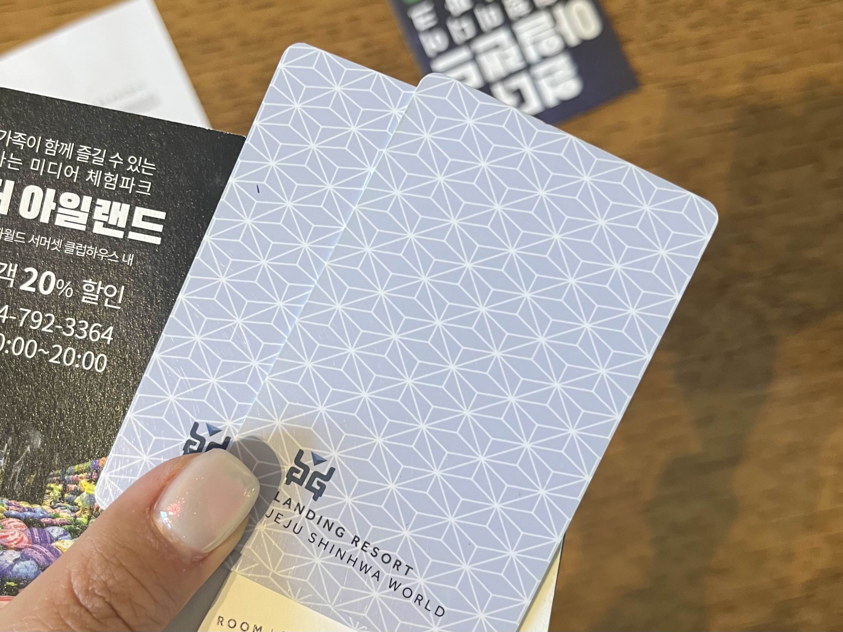 그리고 신화테마파크 어트랙션 세 가지 이용권과 두 개의 배정객실 카드키까쥐 - 💳