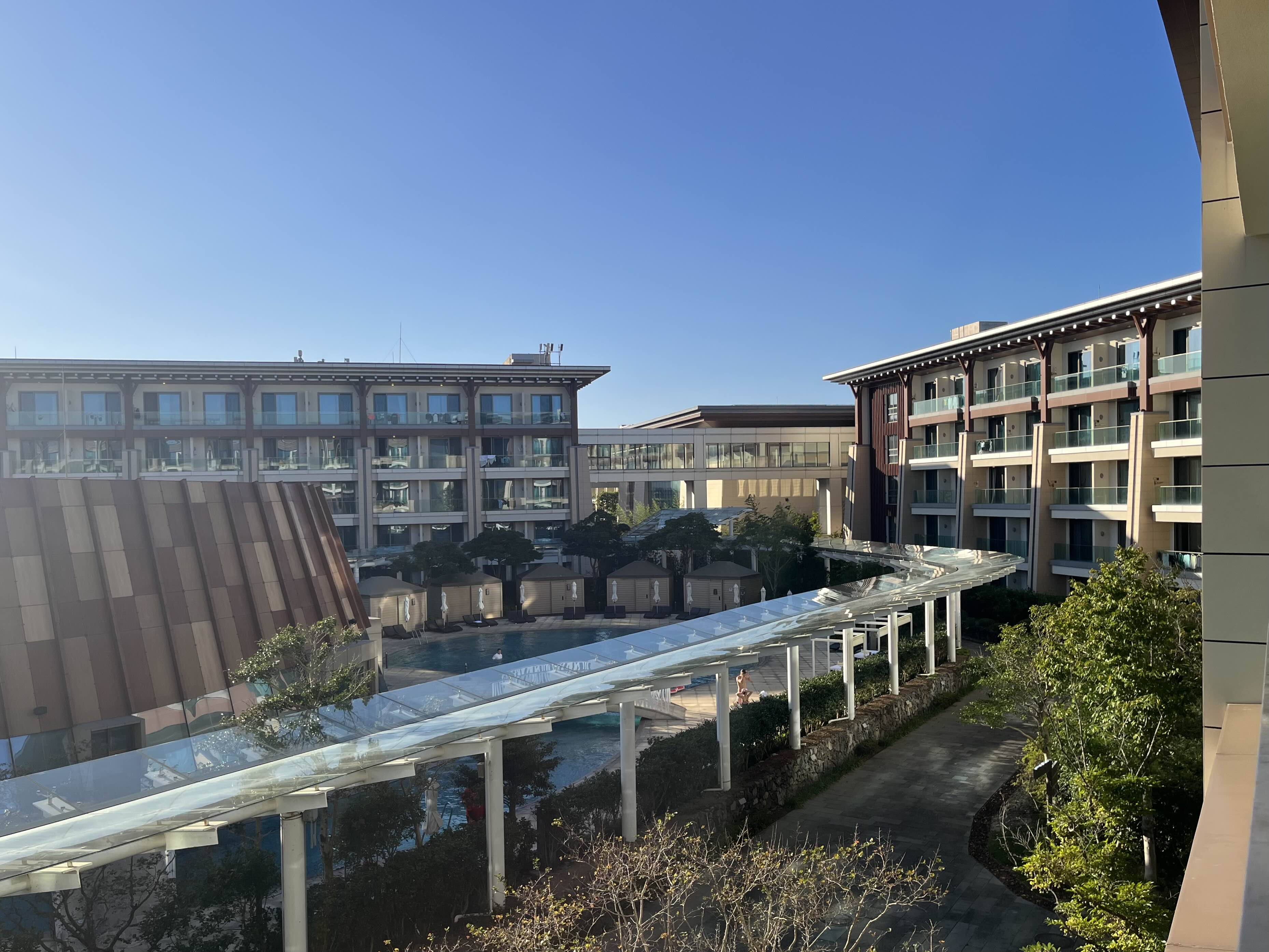 기본적으로 낮은 층수라 뷰가 대단히 좋을 수는 없지만, 보기만 해도 시원하고 탁 트인 수영장 뷰여서 좋았어요