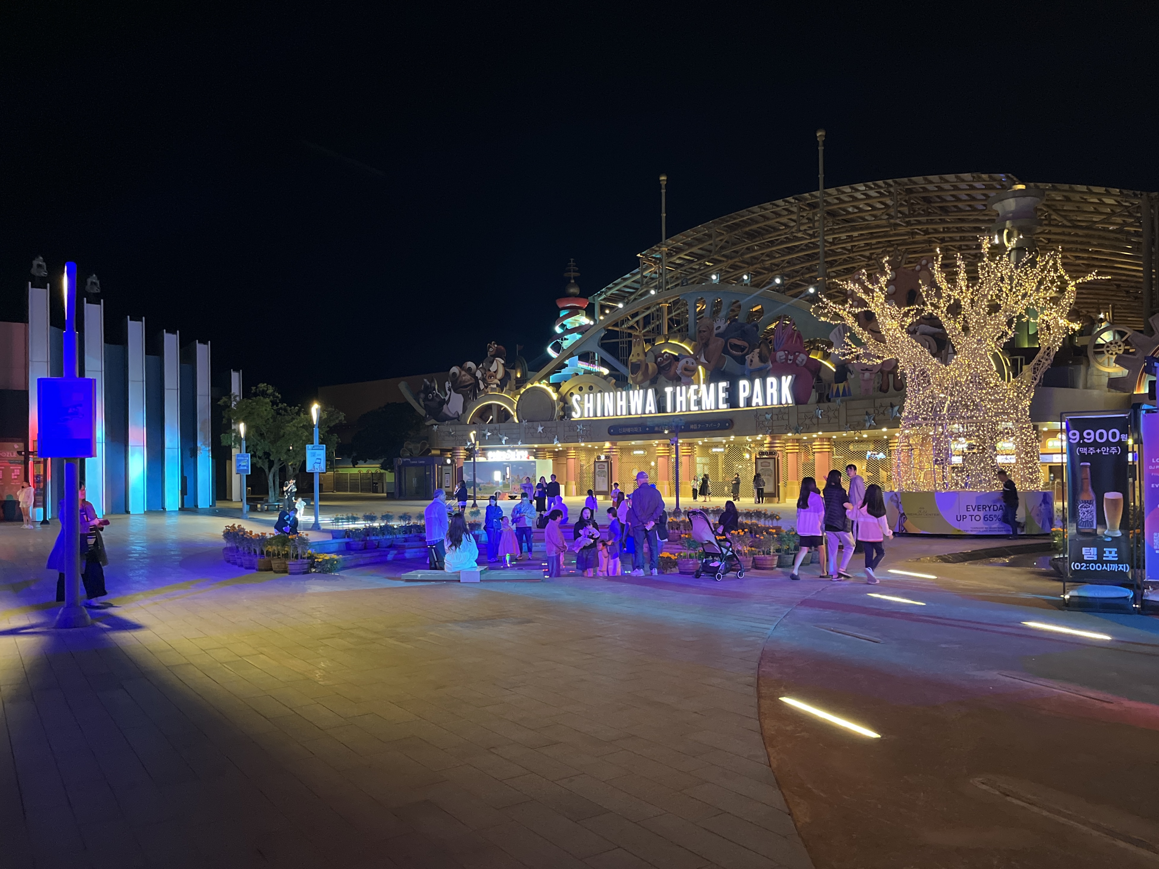 이 광장에서 식당 / 바 / 편의점 등을 이용하실 수 있는데, 신화테마파크와 워터파크 입장도 이곳에서 가능합니다
