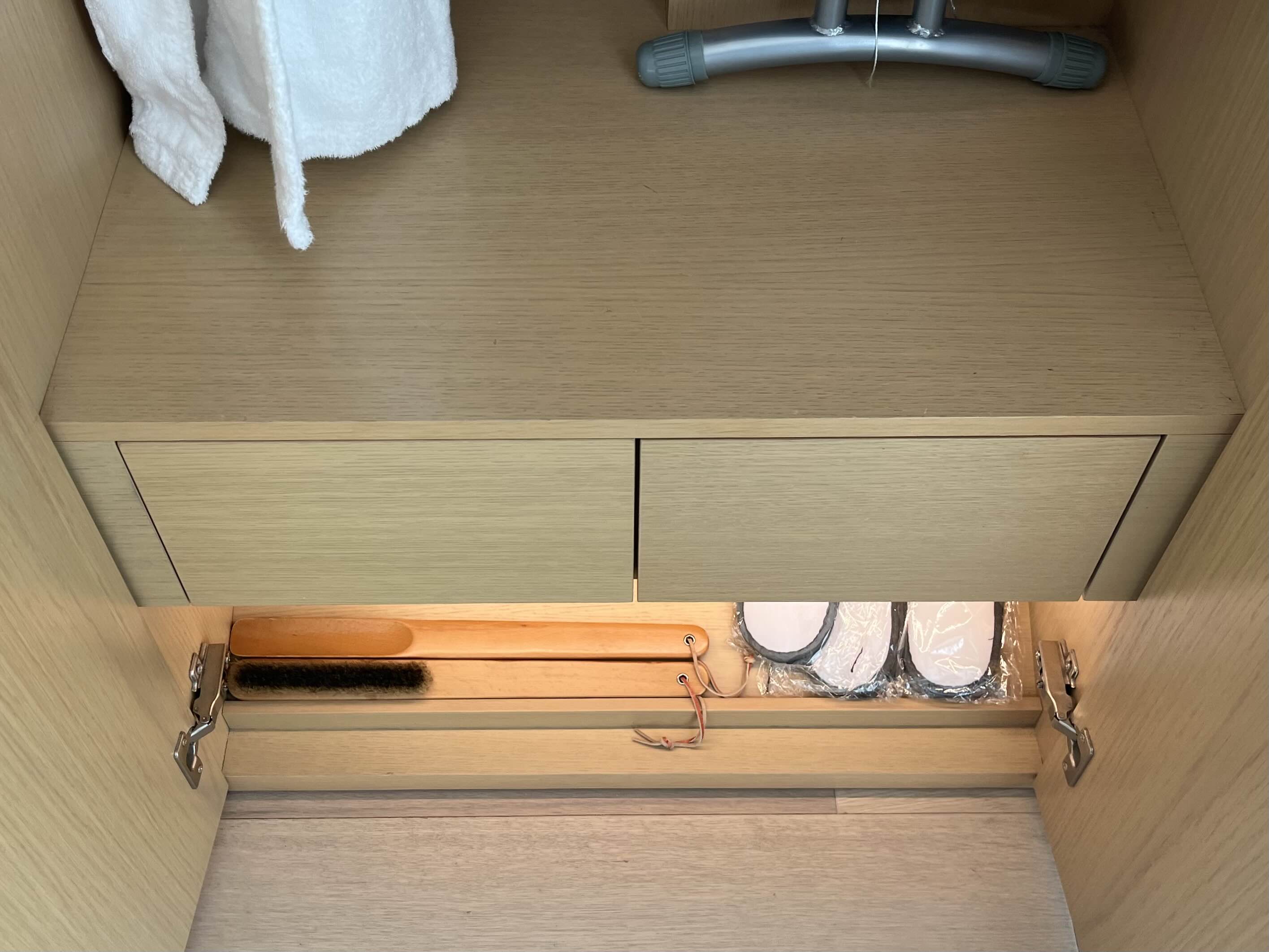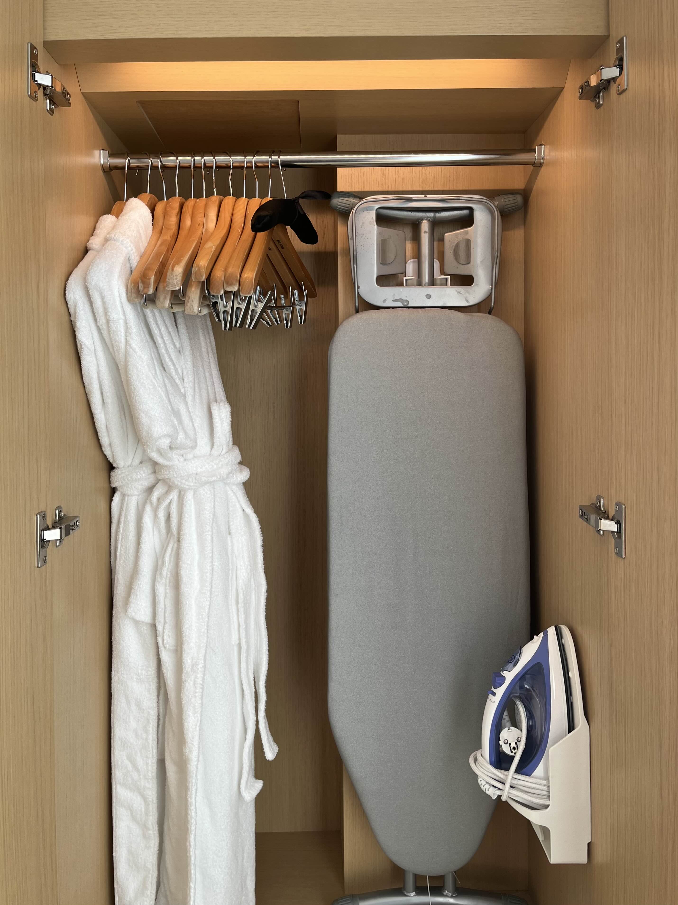 방 안에 있는 것들을 살펴보자면 우선, 미니냉장고와 화장대 옆 안쪽 옷장 안 샤워가운, 슬리퍼, 옷걸이, 다리미