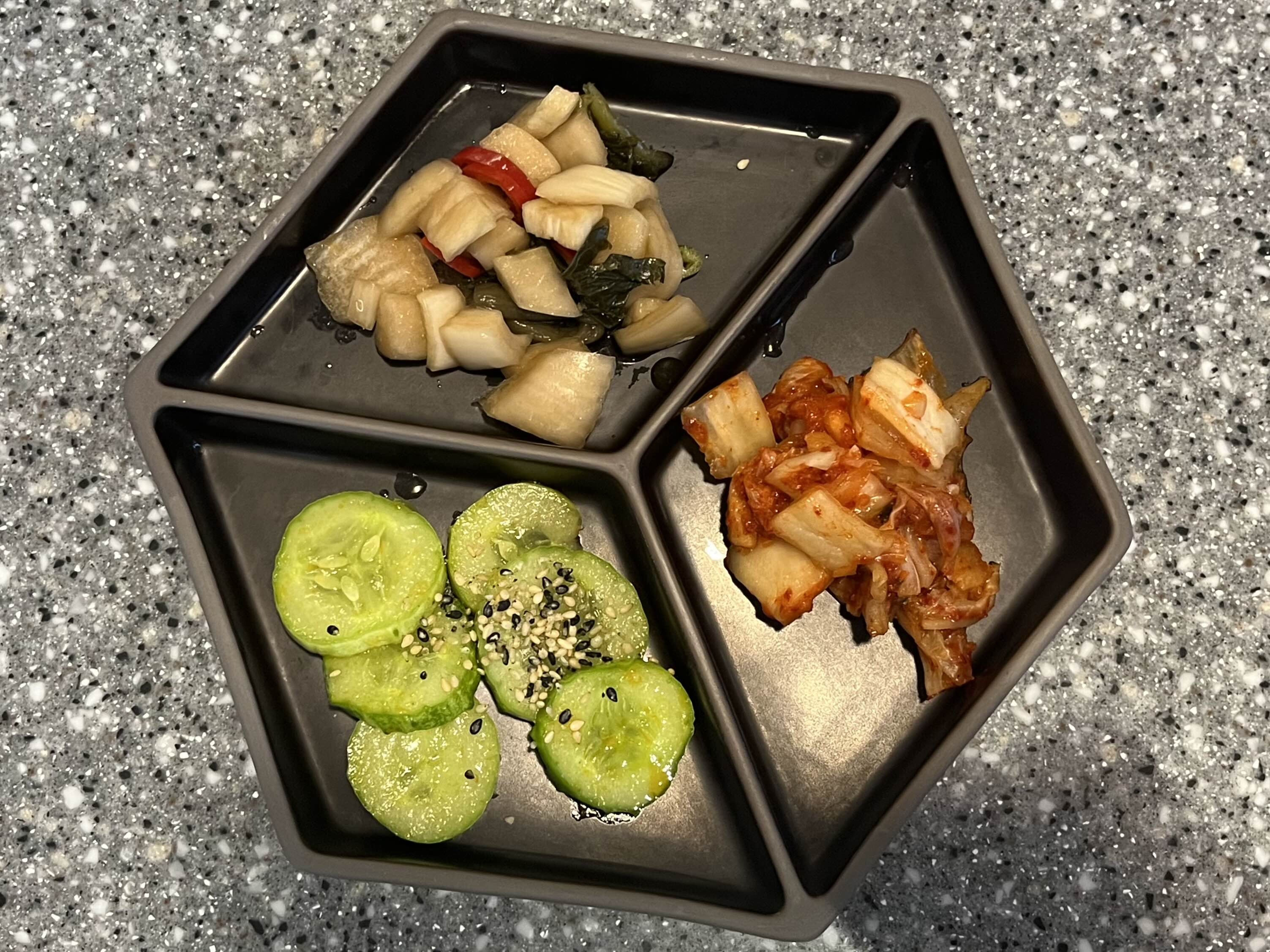 정갈한 기본 밑반찬인 김치 / 장아찌 / 오이무침 세 가지 모두 깔끔하고 맛있는 맛이었어요