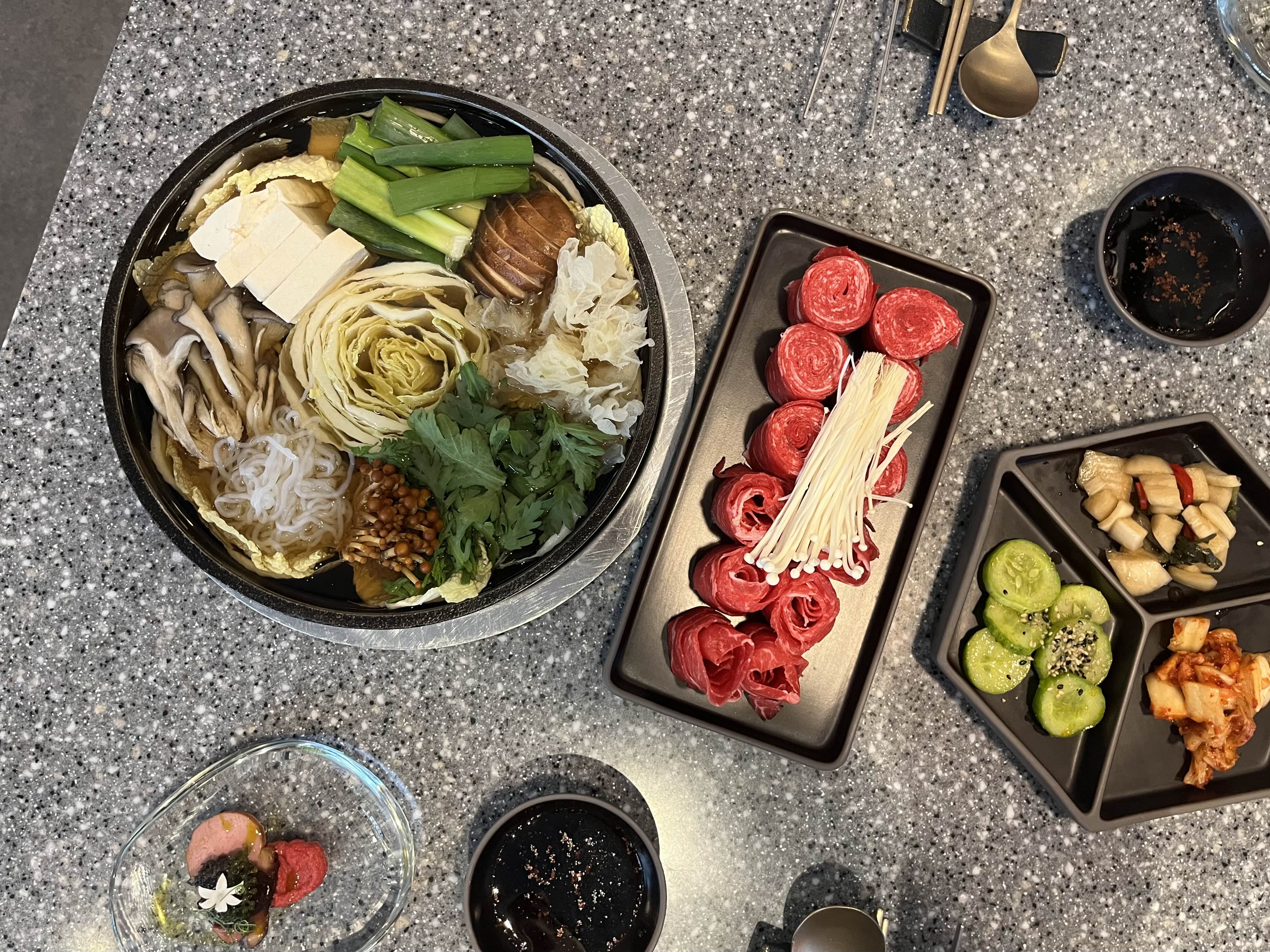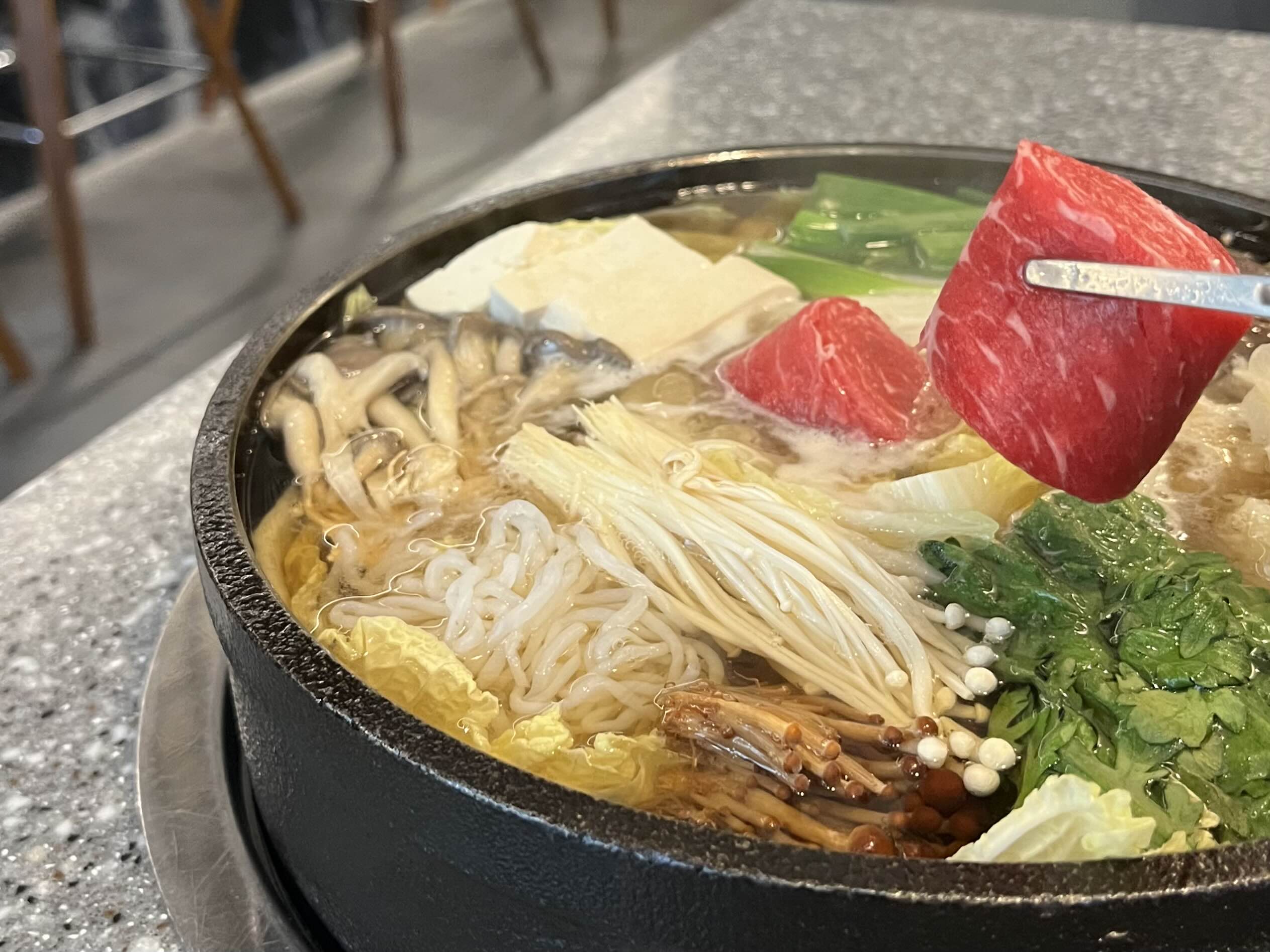 테이블당 인덕션이 한 개라 스키야키도 모둠식으로 먹어야 하는 점이 아쉬웠습니다