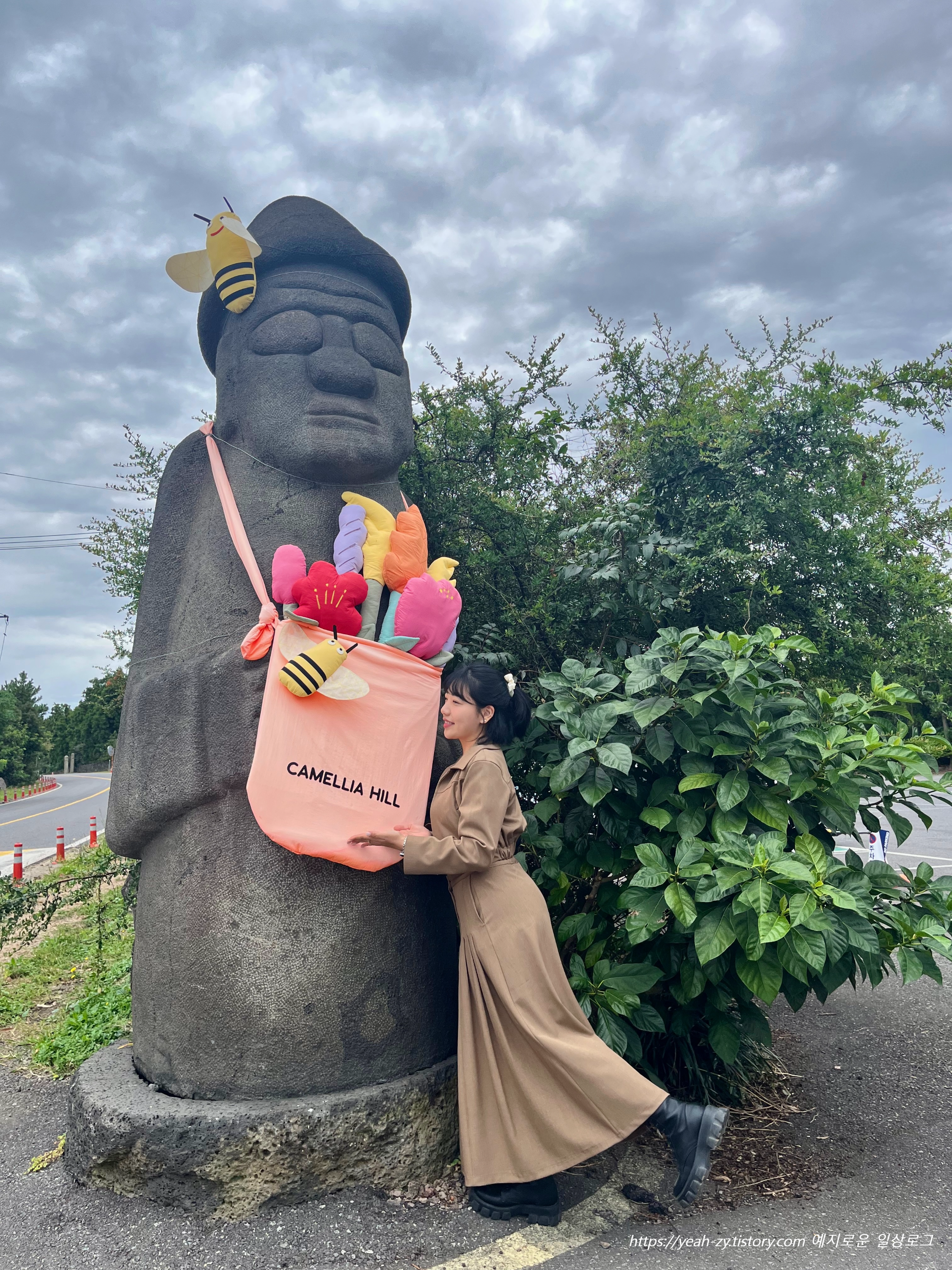 입구에는 알록달록 꽃 크로스백을 맨 귀여운 돌하르방이 반겨주고 있어요😖💐