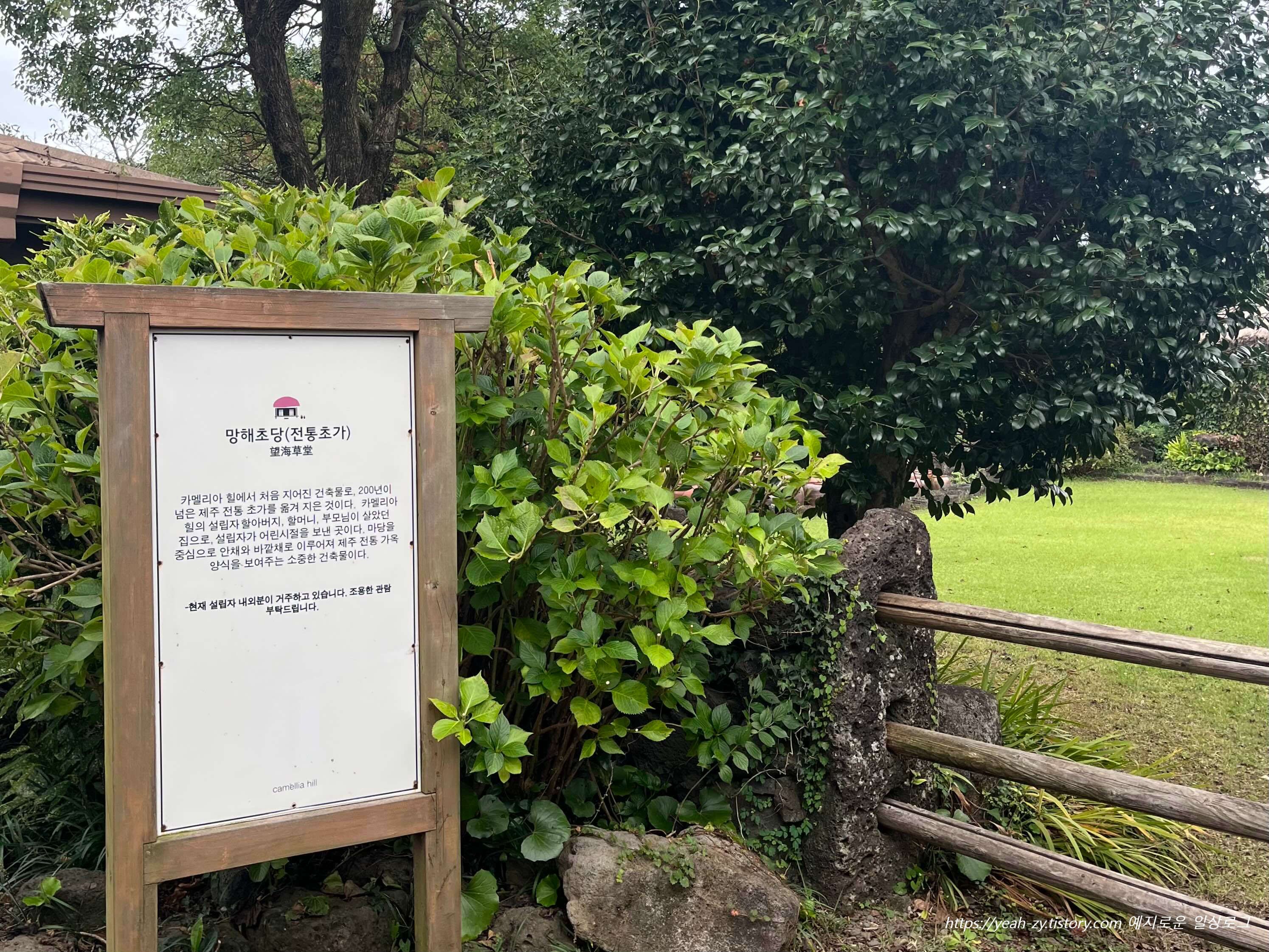 망해초당은 200년이 넘은 제주 전통초가를 옮겨지은 카멜리아힐 최초의 건축물이라고 해요