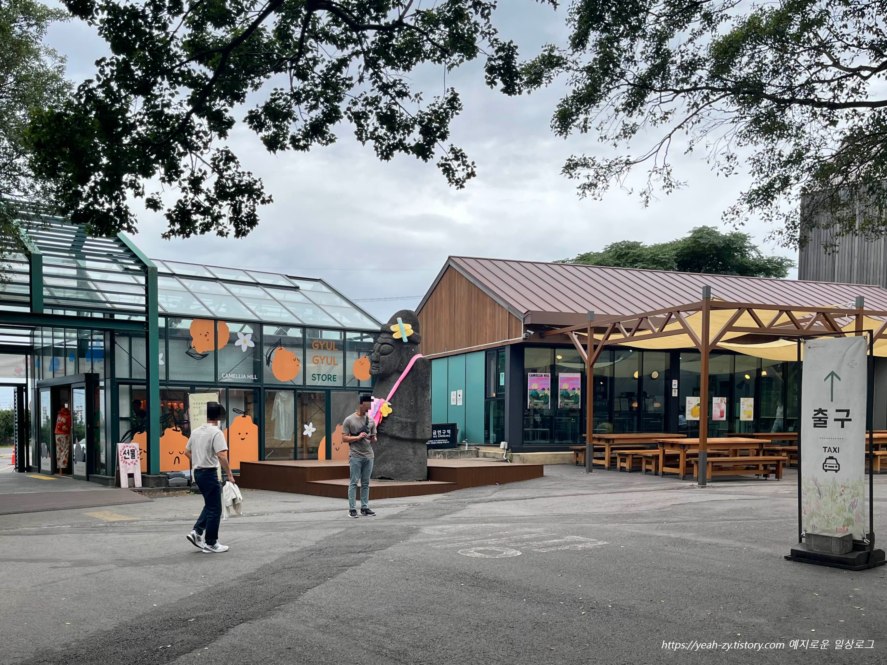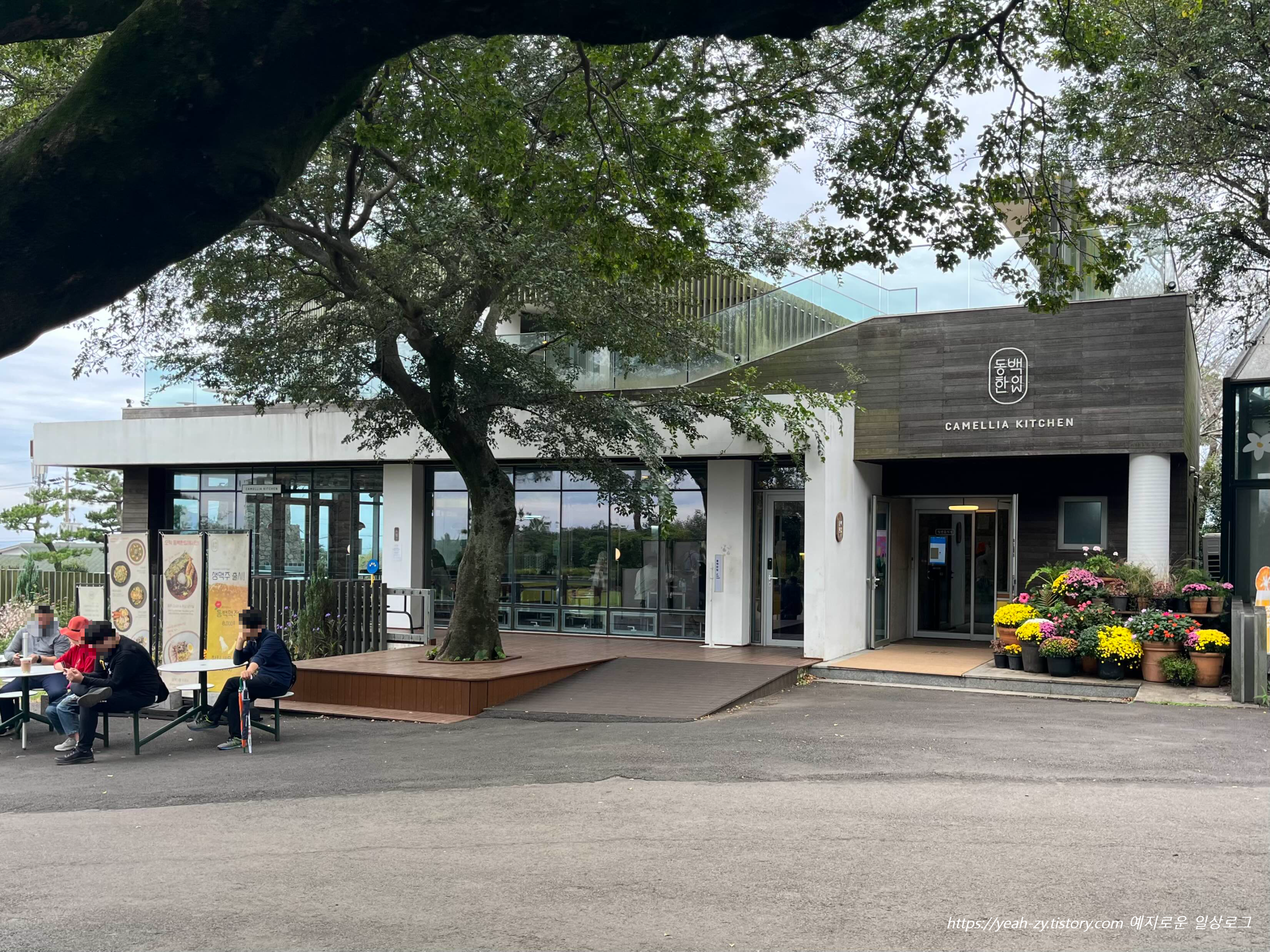 이곳에는 카멜리아힐 굿즈를 파는 동백상회 / 식당 / 카페 / 매표소 등이 위치합니다