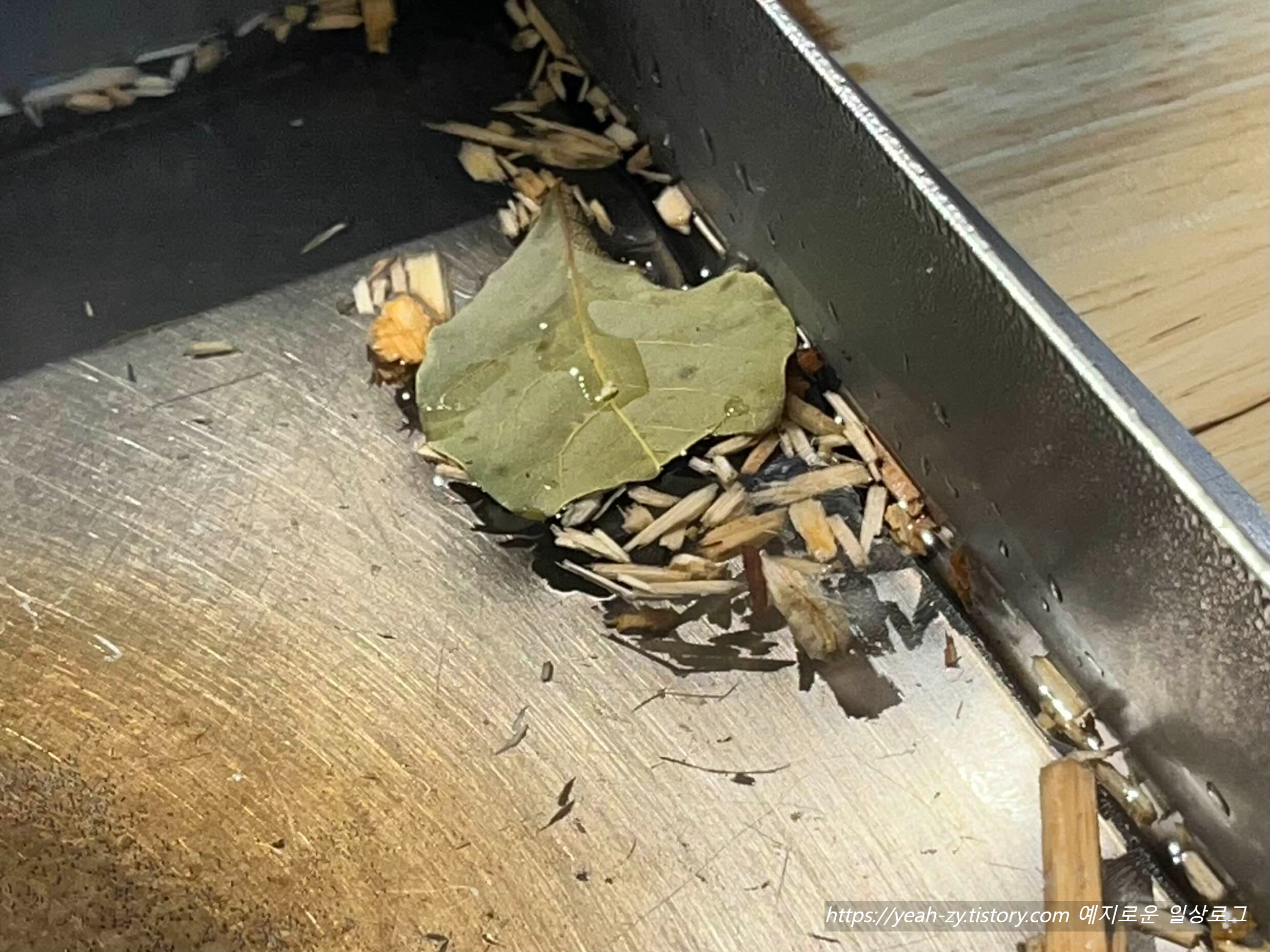 오.. 월계수 잎 두 장, 그리고 알 수 없는 나무 부스러기들은 뭘까요..?🤔