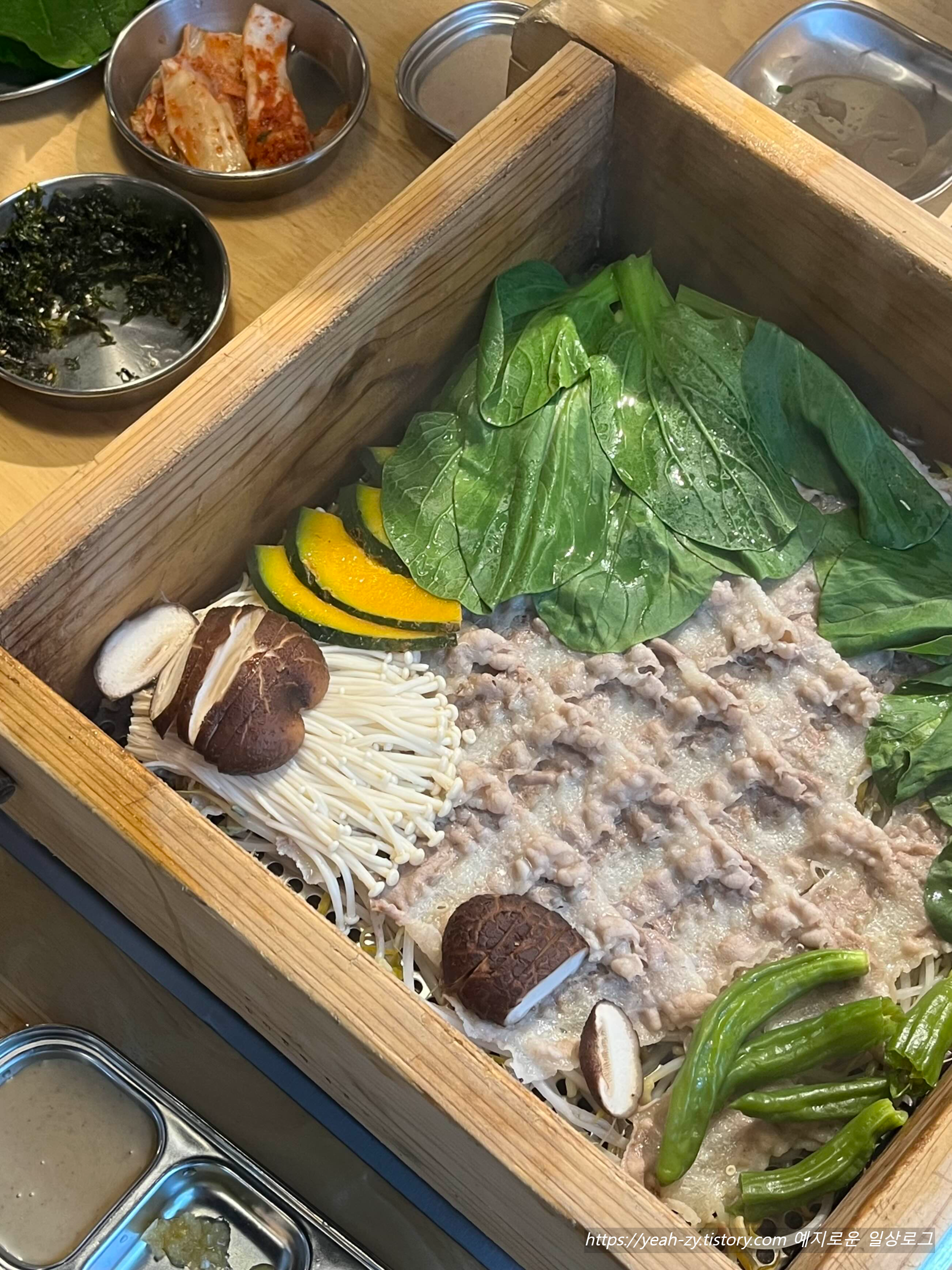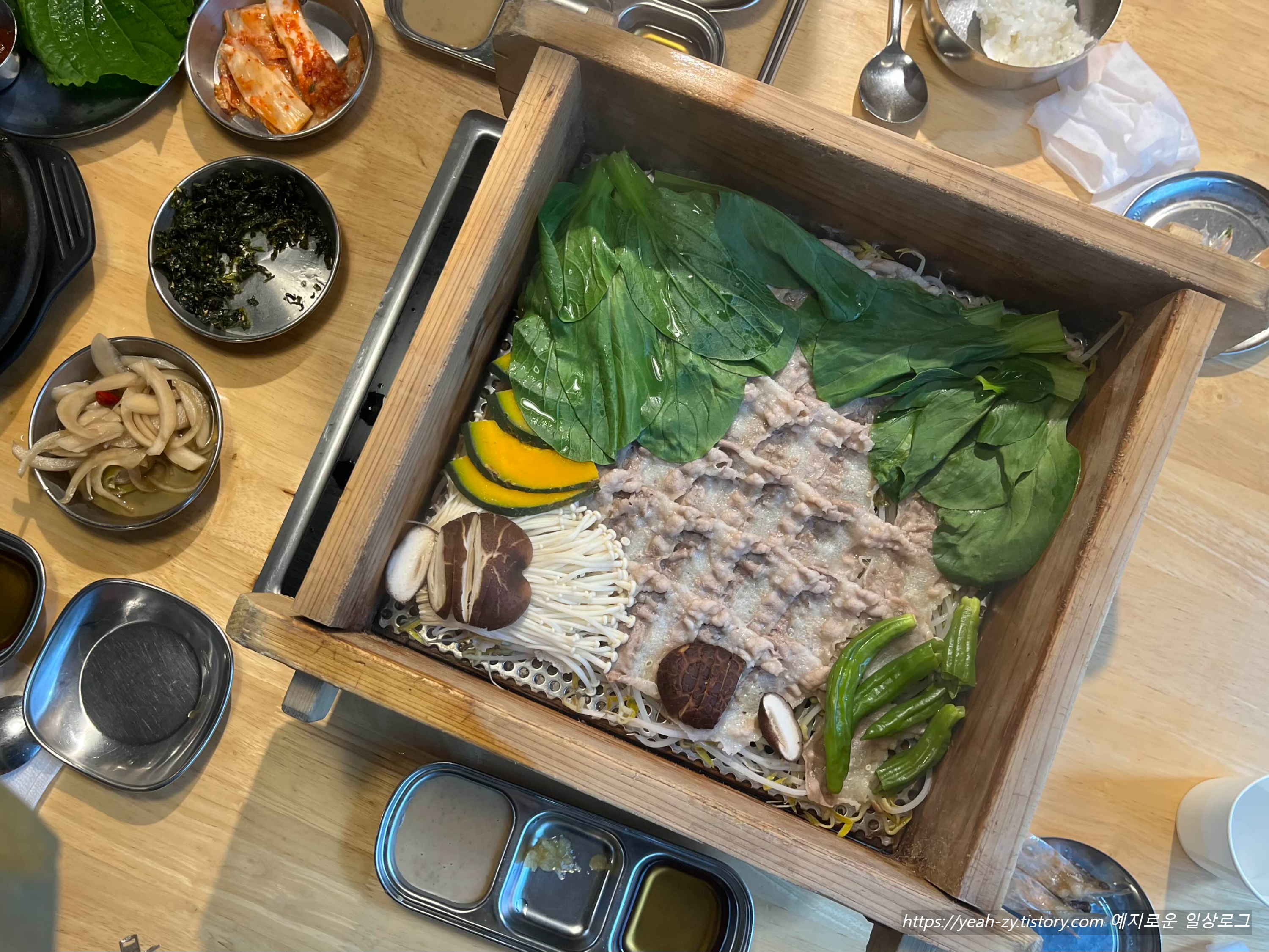 솔솔 올라오는 편백나무 향이 고기와 야채에 잘 배어서 건강한 느낌이 들고 무난했어요