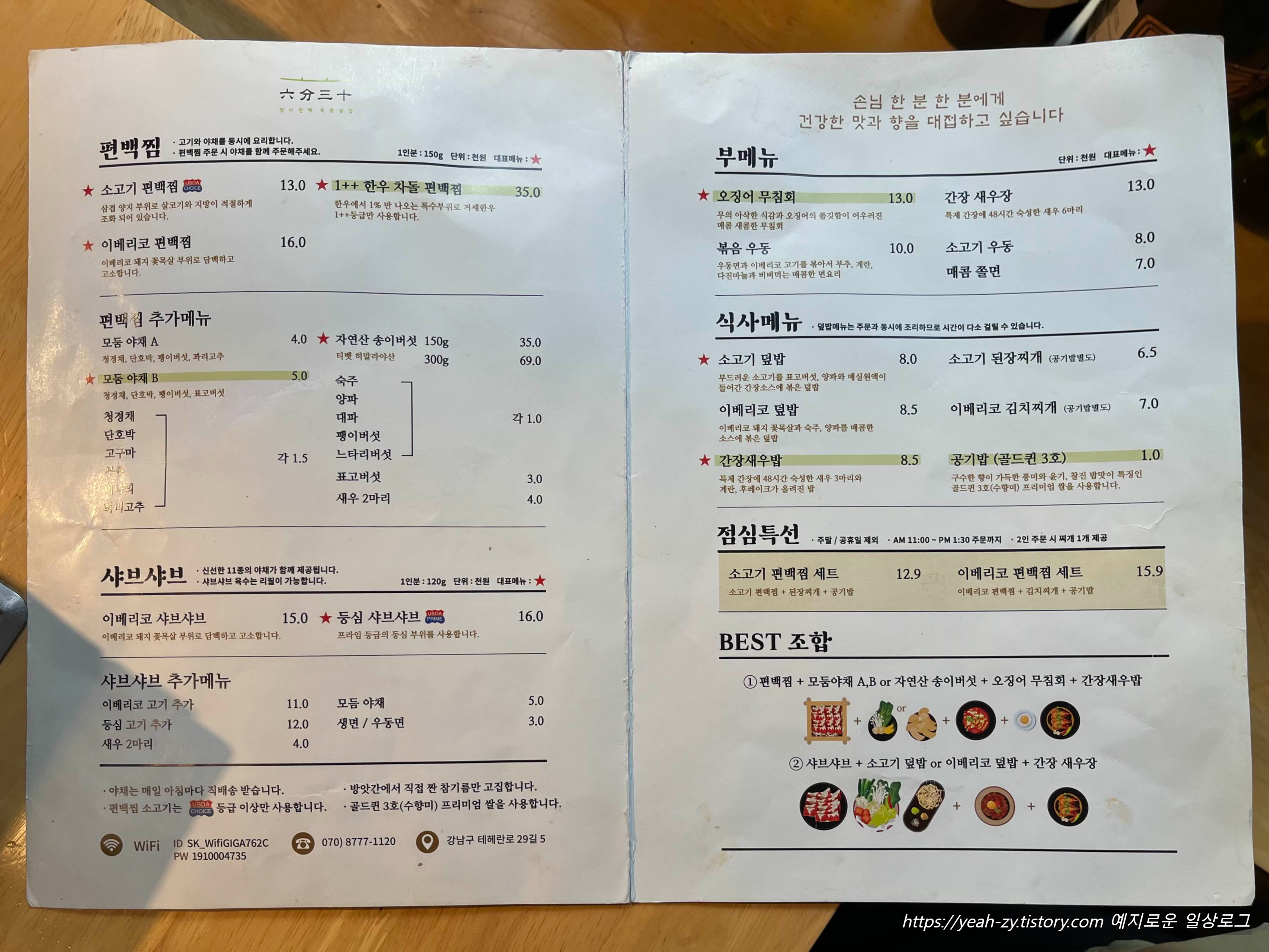 방이편백 육분삼십 ONE PICK MENU