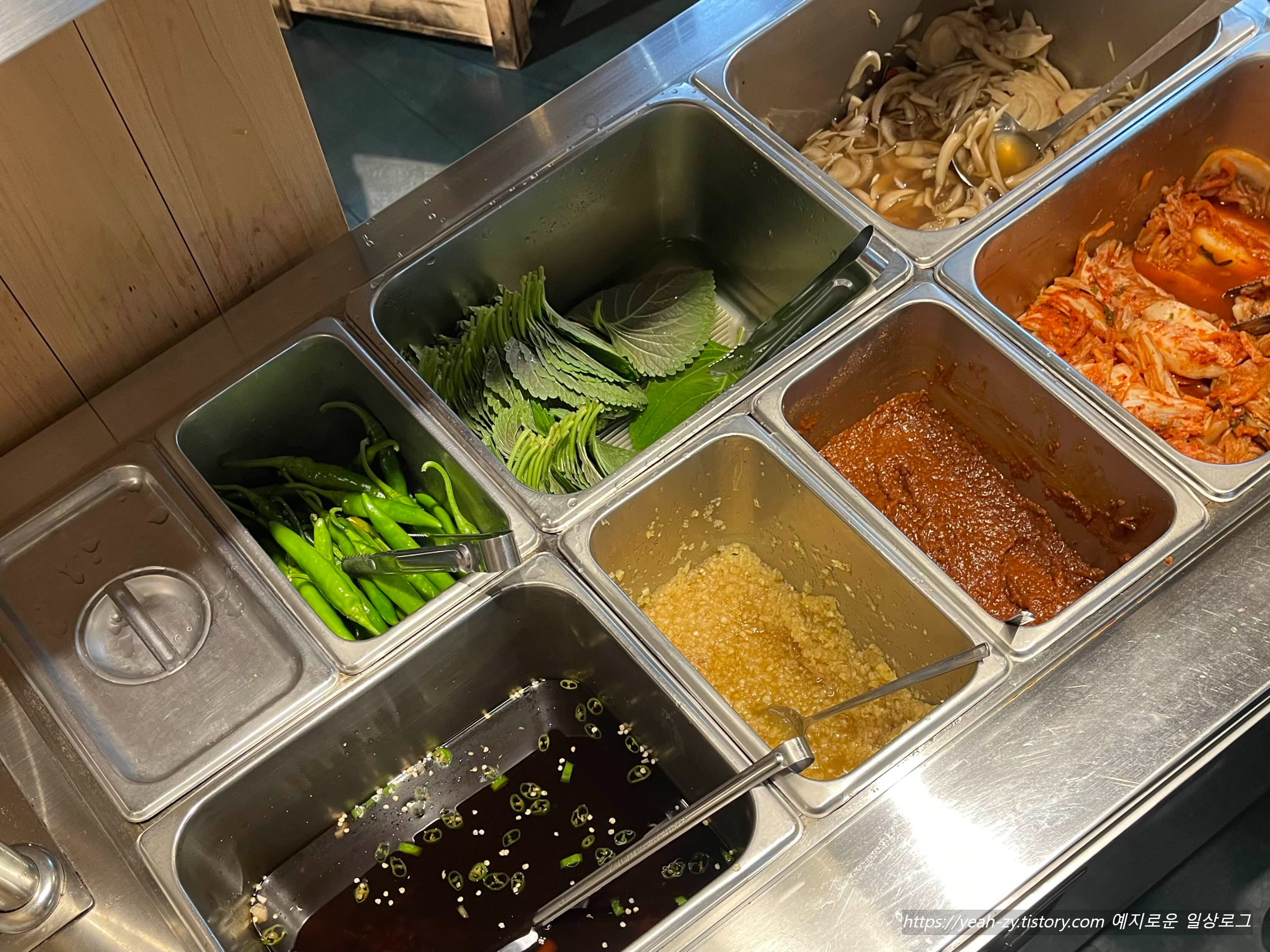 부족한 반찬과 야채, 소스 모두 식사 중 셀프코너에서 리필해 주시면 됩니다
