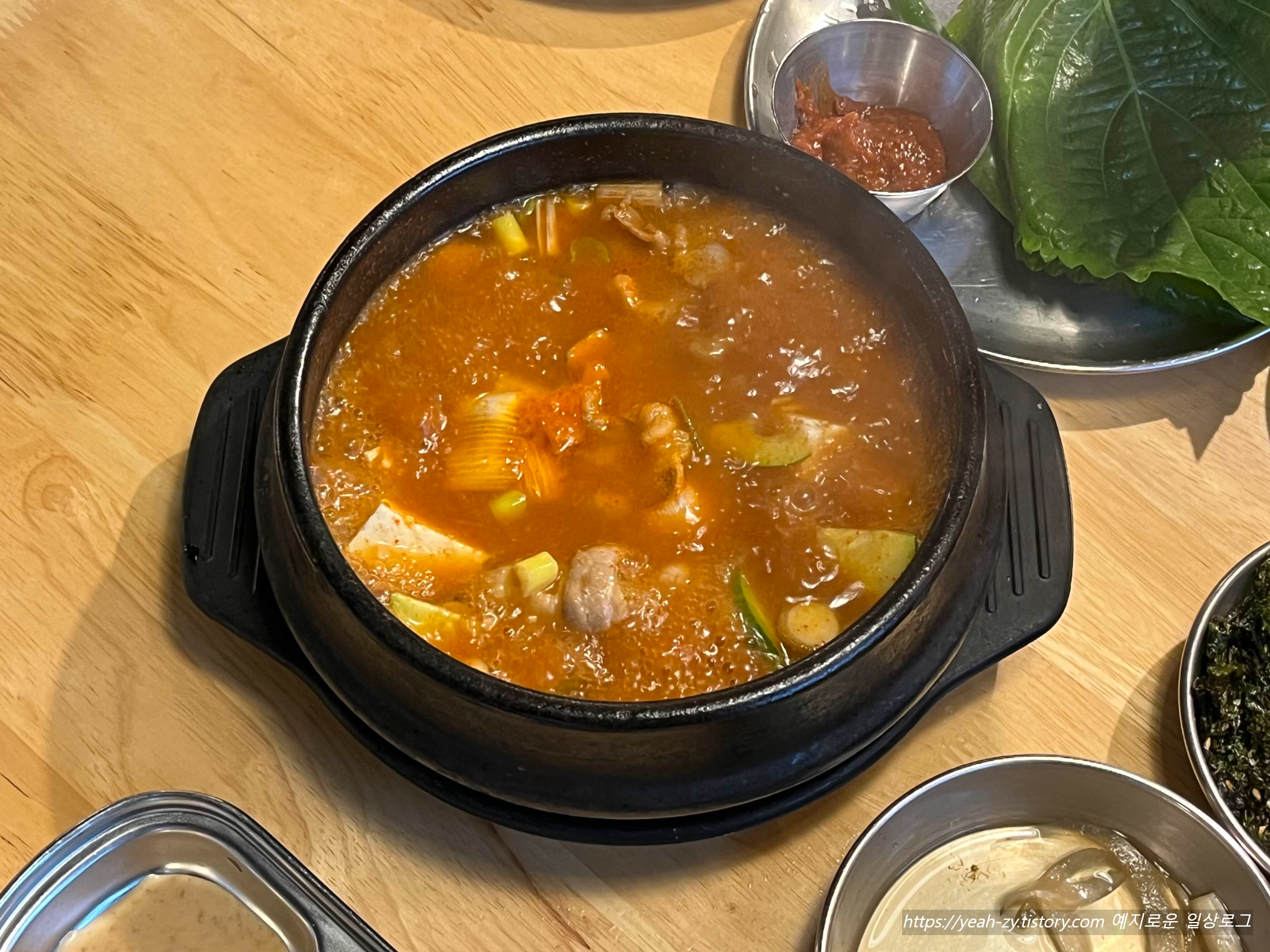 고깃집에서 후식으로 먹는 일반 된장찌개를 생각했는데, 생각보다 크기는 컸고 고기도 들어가서 맛있었어요